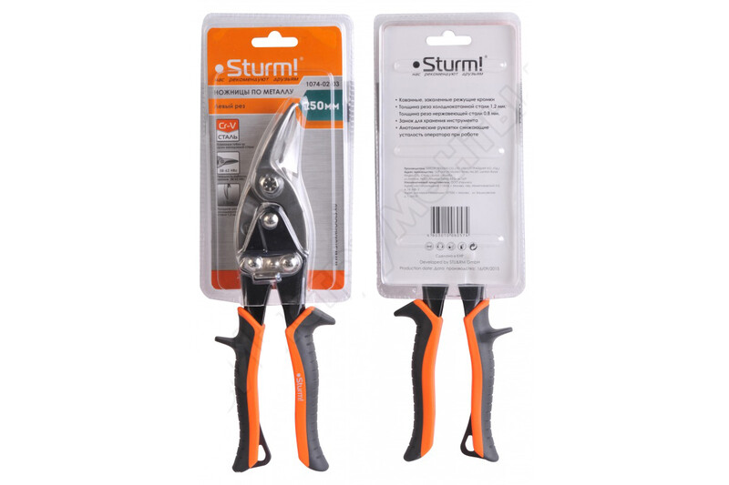 1074-02-03 Ножницы по металлу, левый рез, 2-Х РЫЧАЖНАЯ СИСТЕМА ДЛЯ ОБЛЕГЧЕНИЯ РЕЗА, Sturm!