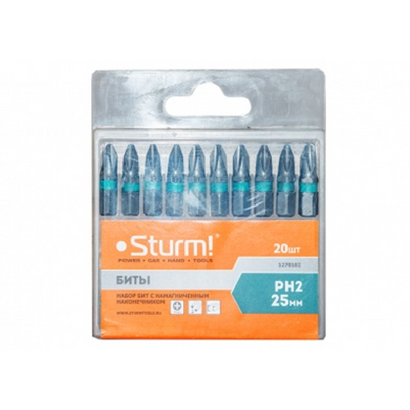 1270102 Биты PH2х25мм,сталь S2, С МАГНИТН. НАКОНЕЧНИКОМ,20 шт. в пластик.кейсе Sturm!