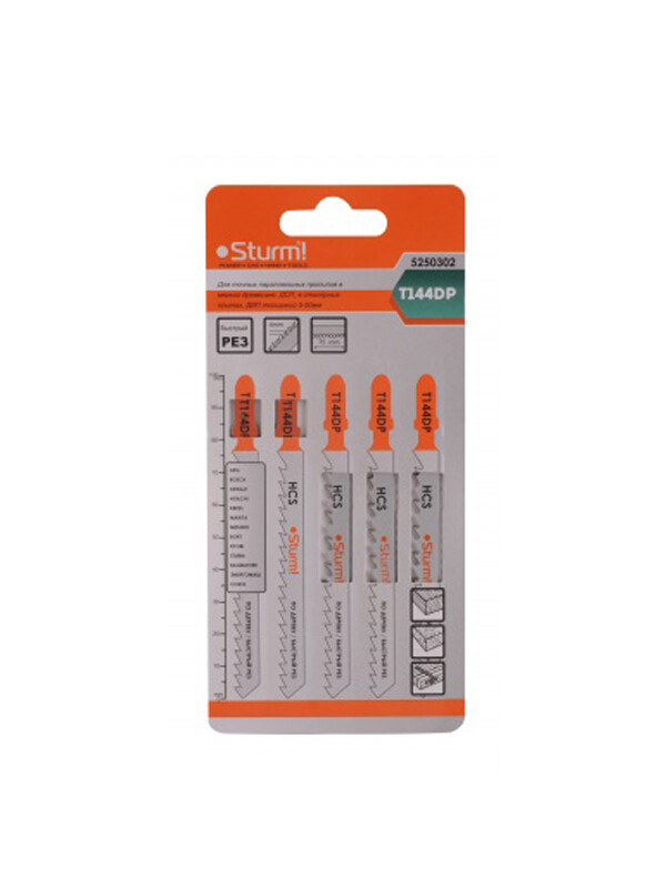 5250302 Пилки для лобзика Sturm! T144DP 5шт, точн.параллельный.рез,5-50мм,мяг.древ.,ДСП,ДВП