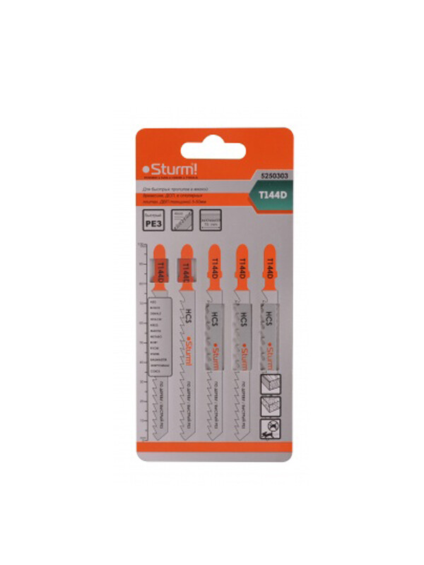 5250303 Пилки для лобзика Sturm! T144D 5шт быстрый рез,5-50мм, мяг.древ., ДСП, ДВП,стол.плиты