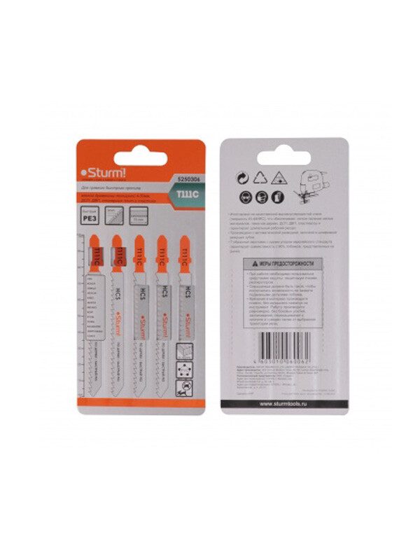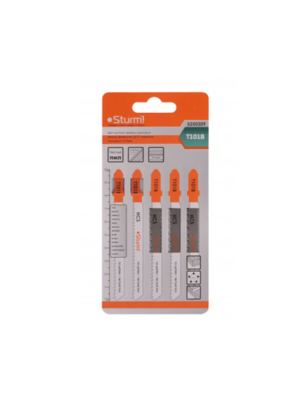 Sturm!. 5250309 Пилки для лобзика STURM T101B 5шт прям.чист.рез,3-30мм,мяг.древ,ДСП,ДВП,пластик