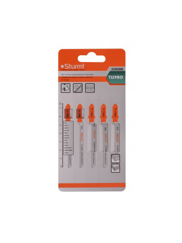 5250308 Пилки для лобзика Sturm! T119BO 5шт криволинейн. чистый рез, 2-15 мм, фанера, пластик