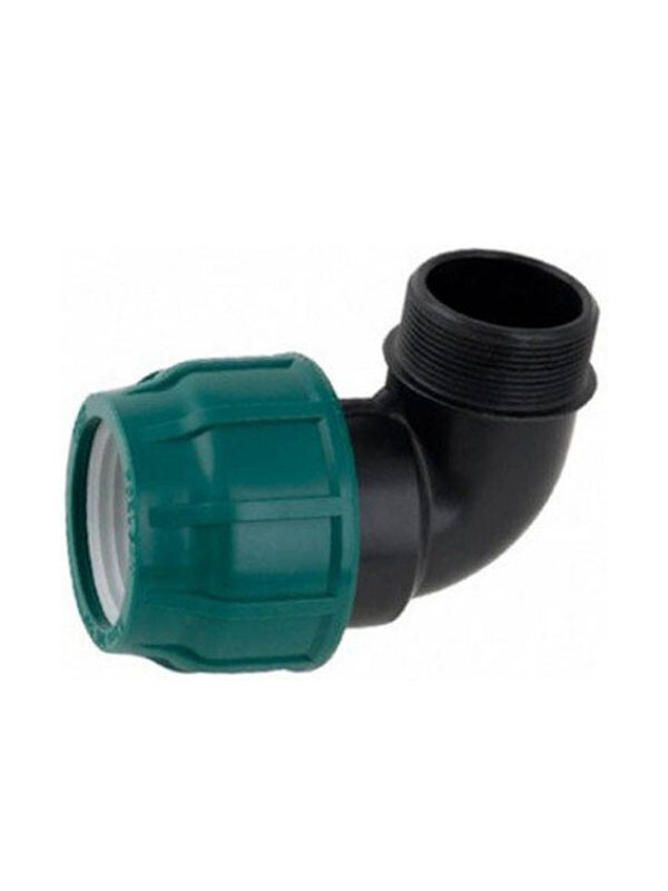 Отвод компрессионный соединительный с наружной резьбой — фитинг, предназначенный для изменения направления полиэтиленовой трубы на 90° с переходом на резьбовое соединение с наружной резьбой