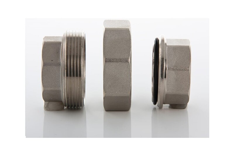 Латунная никелированная разъемная муфта. Резьба – внутренняя/внутренняя, цилиндрическая трубная по ГОСТу 6357 (ISO 228, EN 10226), совместима также с наружной конической трубной резьбой по ГОСТу 6211 (ISO R7). Соединение частей муфты осуществляется с помощью накидной гайки. Уплотнительное кольцо выполнено из синтетического каучука EPDM. Гайку следует накручивать с приложением момента не более 30 H•м.