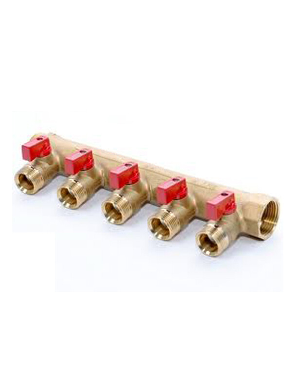 БЕЗ БРЕНДА. Коллектор 3/4 г/ш 5 шар. кранами вых х 1/2 ш