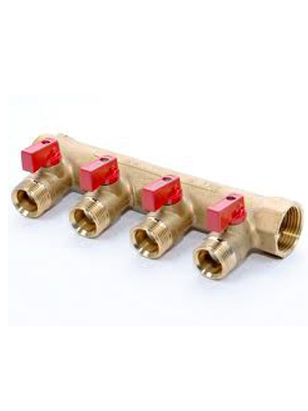 БЕЗ БРЕНДА. Коллектор 3/4 г/ш 4 шар. кранами вых х 1/2 ш