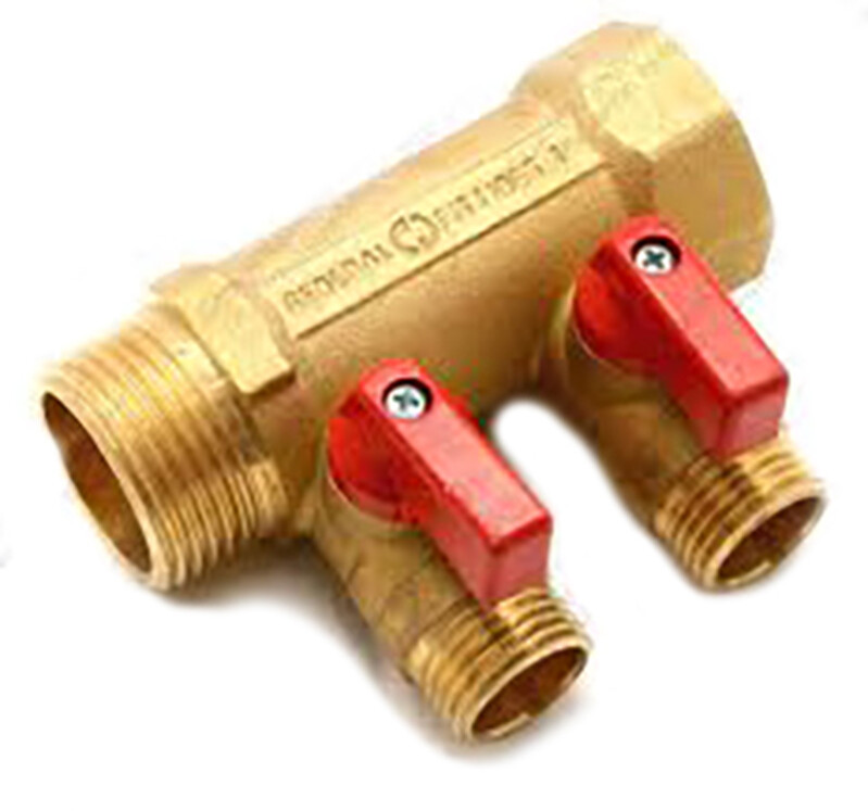 БЕЗ БРЕНДА. Коллектор 3/4 г/ш 2 шар. кранами вых х 1/2 ш