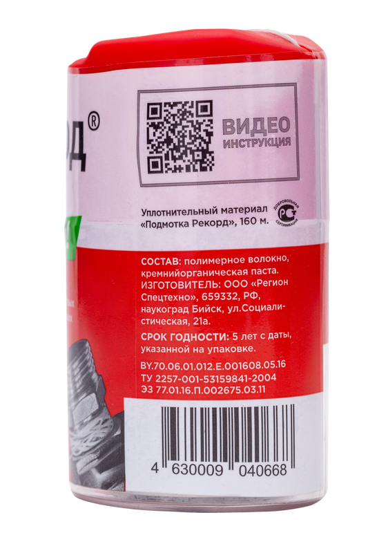Подмотка Рекорд — уплотнительный материал последнего поколения, который обеспечивает надежное уплотнение и защищает соединение от коррозии.