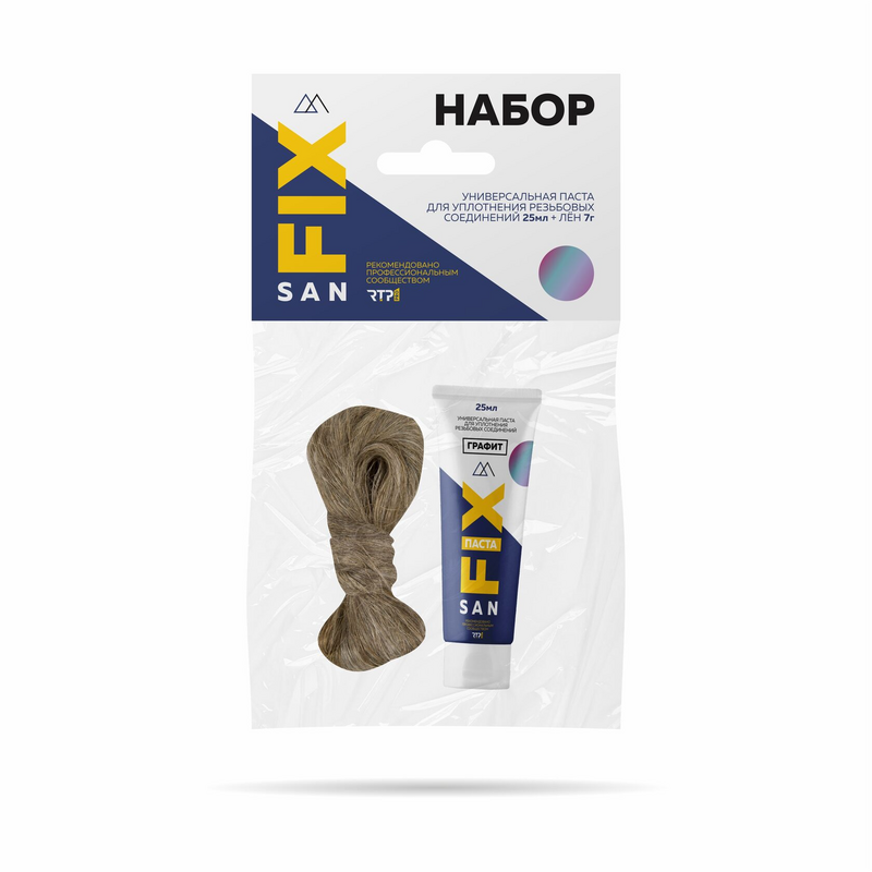 Набор монтажный: универсальная паста для уплотнения резьбовых соединений + лен (25 мл. + 7 гр.), в тубе, графит, SANFIX
