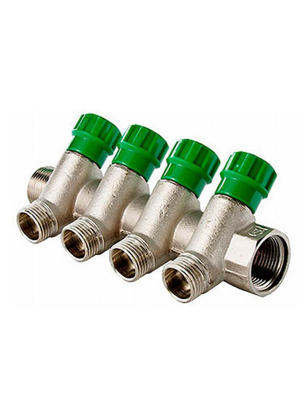 Никелированный коллектор для воды и других сред, неагрессивных к материалам изделия. Корпус изготовлен из качественной сантехнической латуни марки CW617N (европейский стандарт ЕN 12165). На каждом выходе предусмотрен отсекающий шаровой кран или регулировочный вентиль. Рабочая температура – до 110 °С, давление – до 10 бар.