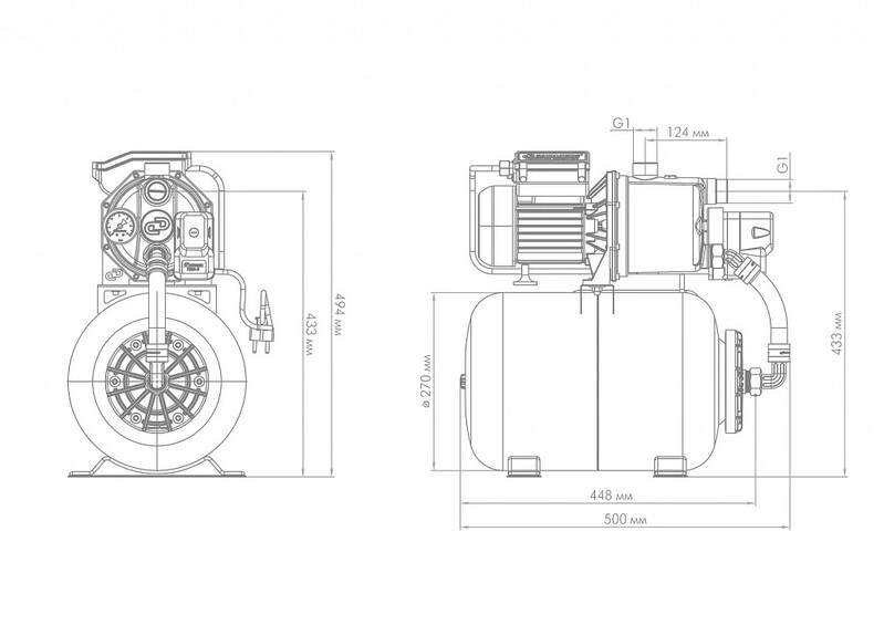 Насосная станция Джамбо 60/35 Н-24 осуществляет подачу воды с глубины 8 метров из колодцев, магистральных водопроводов и водоёмов. Давление в системе поддерживается в автоматическом режиме благодаря наличию реле давления.