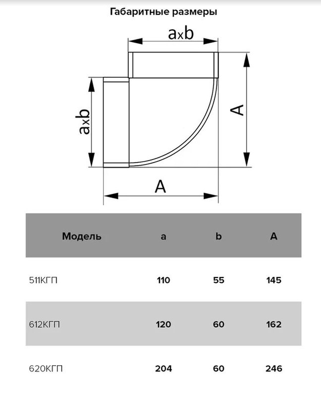 Колена горизонтальные 90° плоские КГП для горизонтального соединения воздуховодов соответствующего сечения под углом 90°. C каналами соответствующего сечения соединяются напрямую.