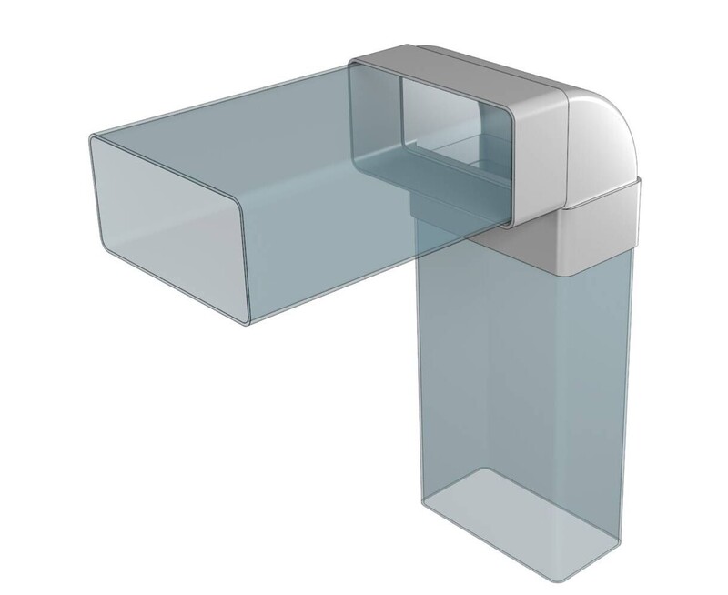Колено вертикальное, используется в системах приточной или вытяжной вентиляции помещений в качестве соединительного элемента разноразмерных прямоугольных каналов между собой под углом 90
