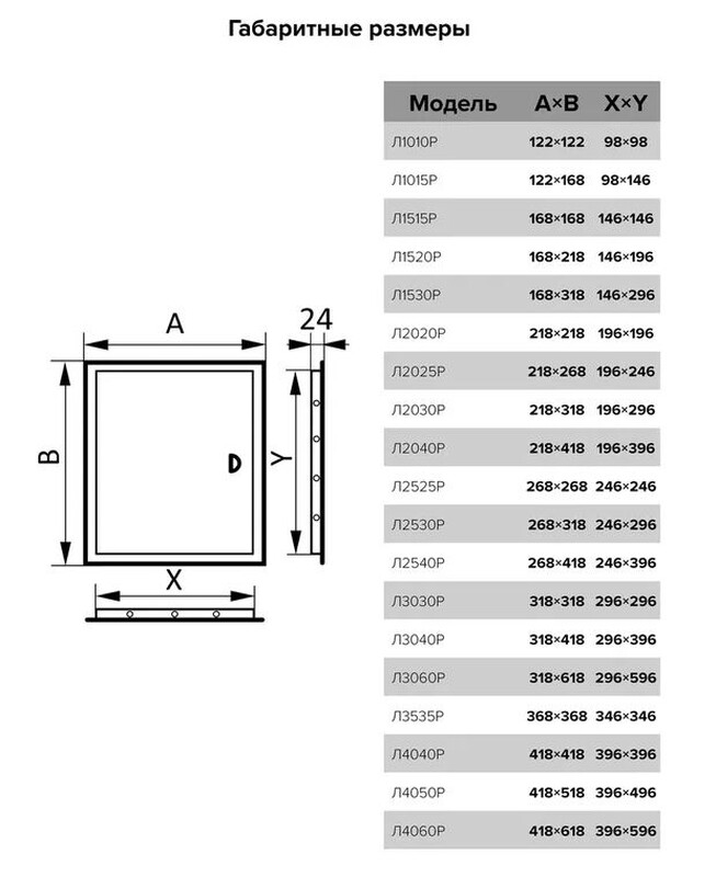 Люк-дверца ревизионная 218х318 с фланцем 196х296 с ручкой АБС (Л2030Р)