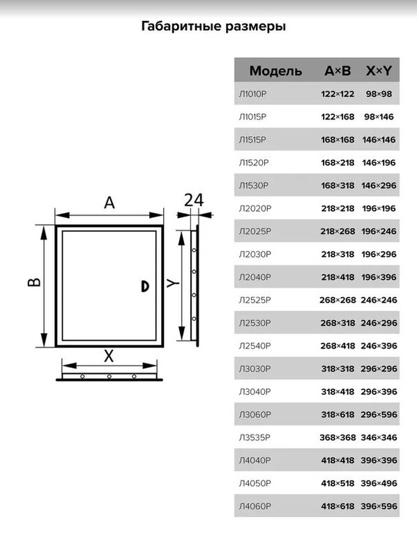 Люк-дверца ревизионная 218х418 с фланцем 196х396 с ручкой АБС (Л2040Р)