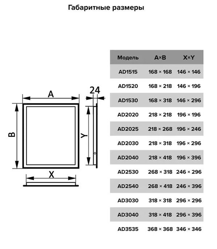 Люк-дверца ревизионный нажимной AD 1530 168х318 с фланцем 146х296