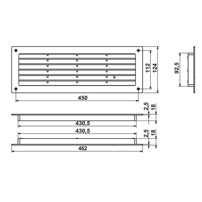 Решетка Long 45 w/n 462х124 мм (для вентиляции дверей, подоконников)