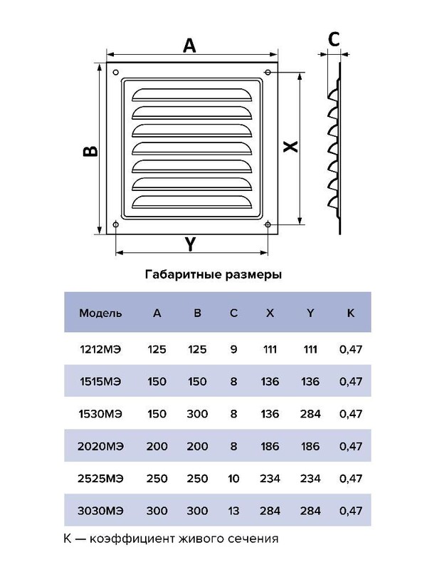 Решетка МЭ изготавливается из оцинкованной стали, которая покрывается полимерной эмалью. Имеет наклонные жалюзи.
