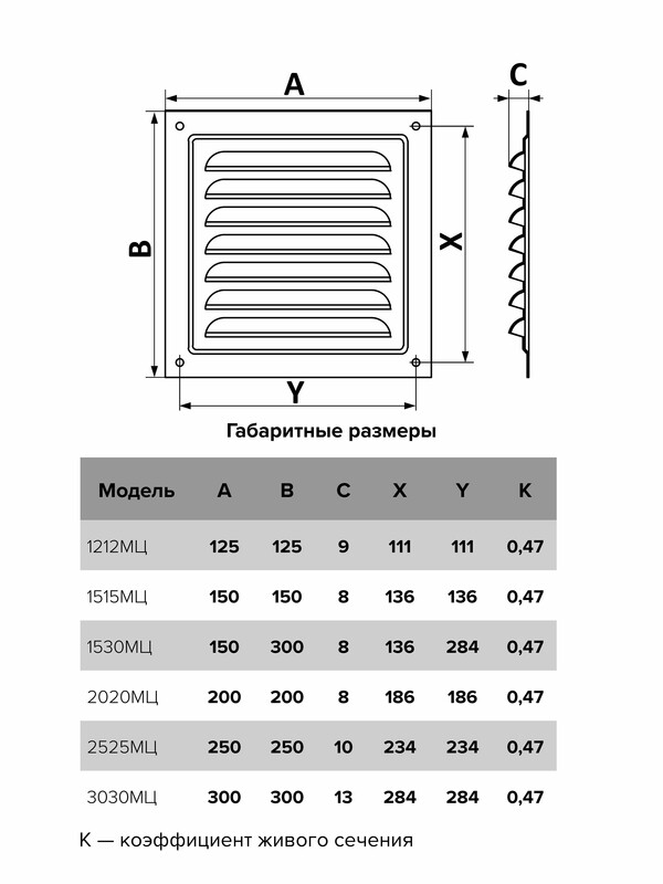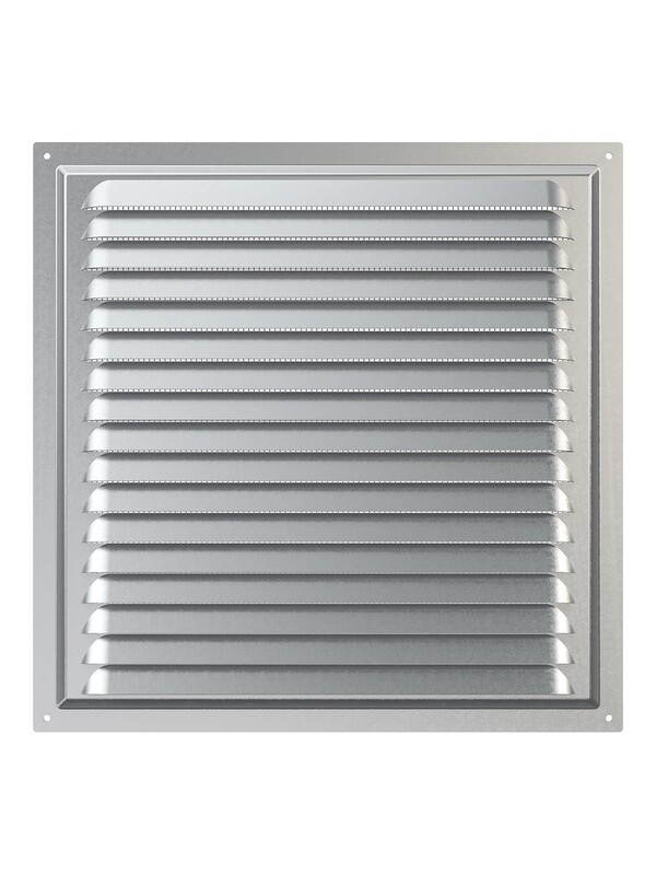 Вентиляционная решетка МЦ изготавливается из оцинкованной стали. Имеет наклонные жалюзи и антимоскитную сетку для защиты от насекомых. Сетка устанавливается в специальном углублении.