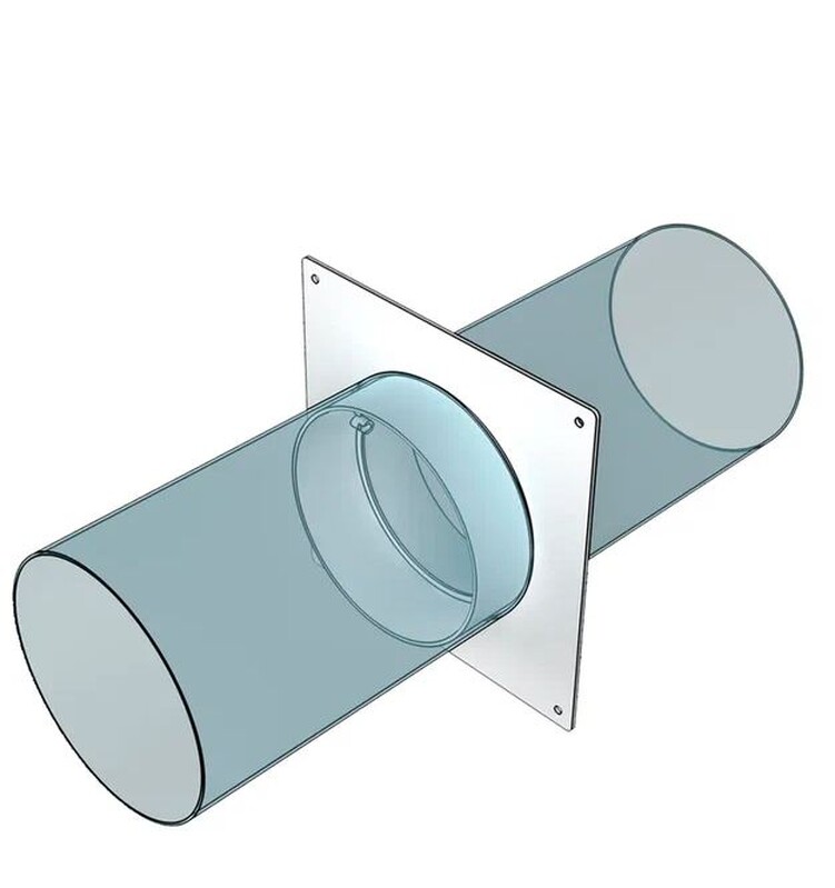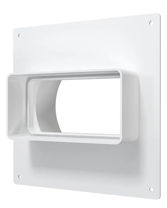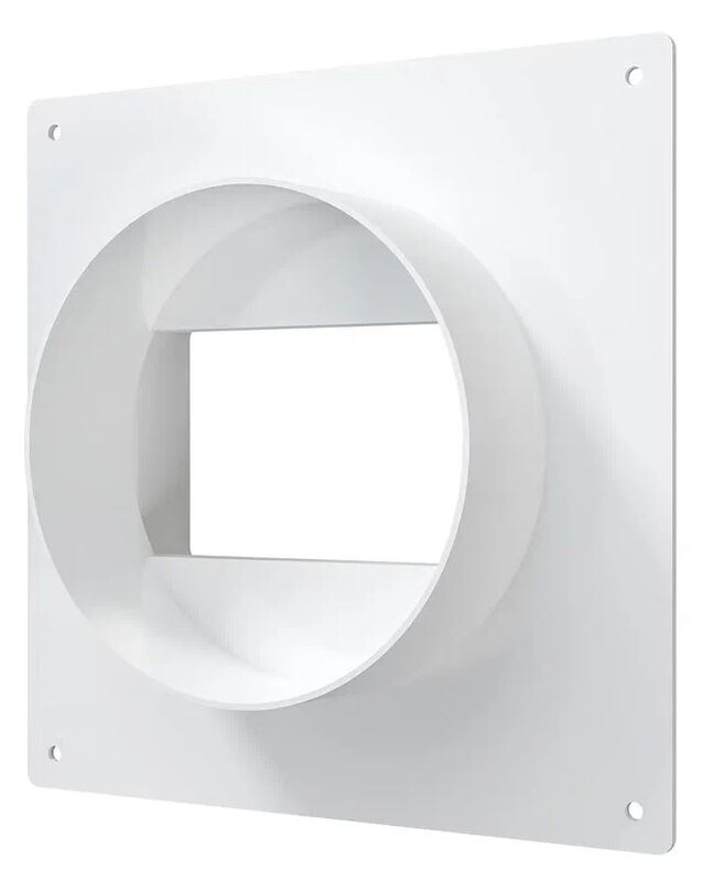 Соединитель с пластиной предназначен для соединения двух пластиковых воздуховода между собой. Настенная пластина крепится к поверхности перегородки с помощью четырех шурупов. Является одним из элементов пластиковой вентиляции для помещений квартиры, дома, магазина и т.д.