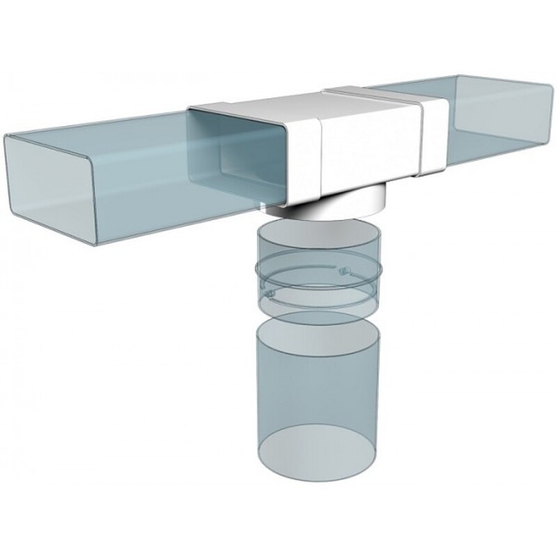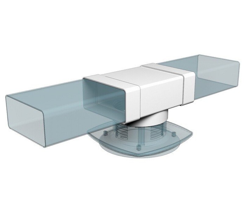 Соединитель плоских воздуховодов с выходом на фланцевые воздухораспределители.