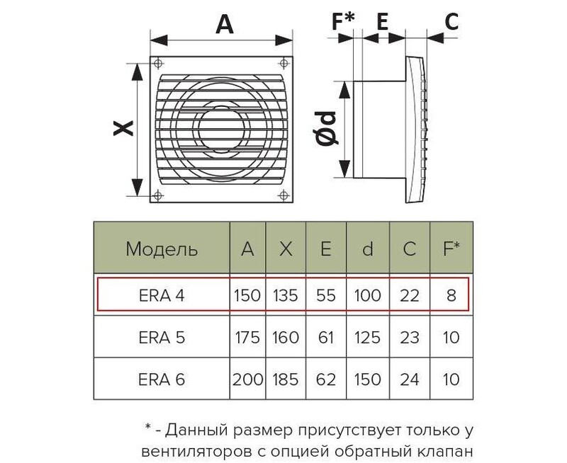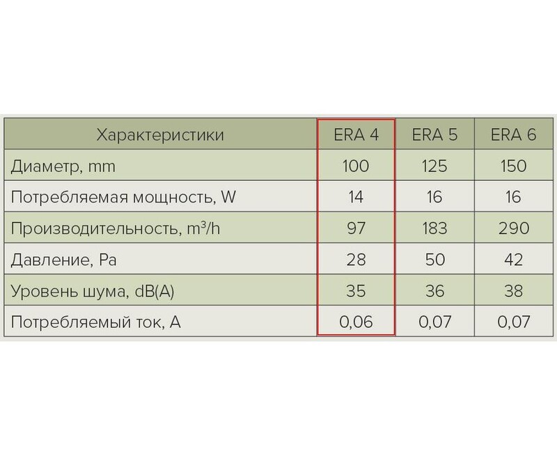 Вентилятор ERA 4 применяется для постоянной и периодической вентиляции санузлов, ванных комнат, кухонь и других бытовых помещений.