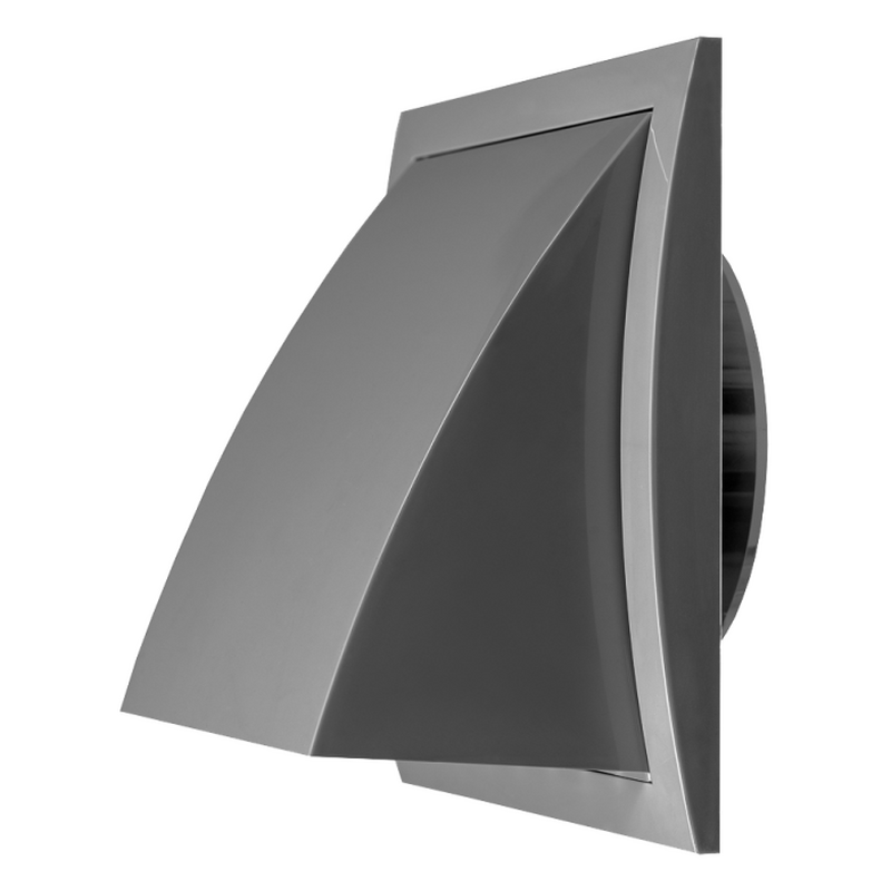 Выход стенной вытяжной с обратным клапаном SANTREK AIR 175х175 с фланцем D100, СЕРЫЙ (175К100ФВ)