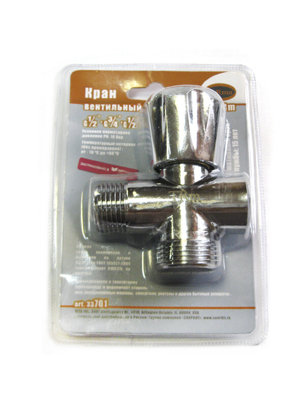 БЕЗ БРЕНДА. Кран 3-х проходной вент. 1/2х3/4х1/2 701