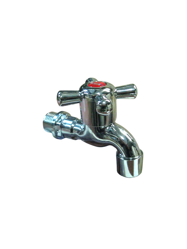 БЕЗ БРЕНДА. Кран водоразборный 1/2" пластиковый со штуцером (ХРОМ) крест