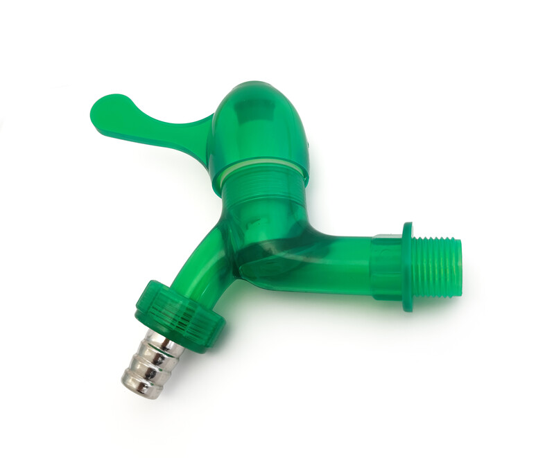 БЕЗ БРЕНДА. Кран водоразборный 1/2" пластиковый со штуцером (прозрачн. зелёный)
