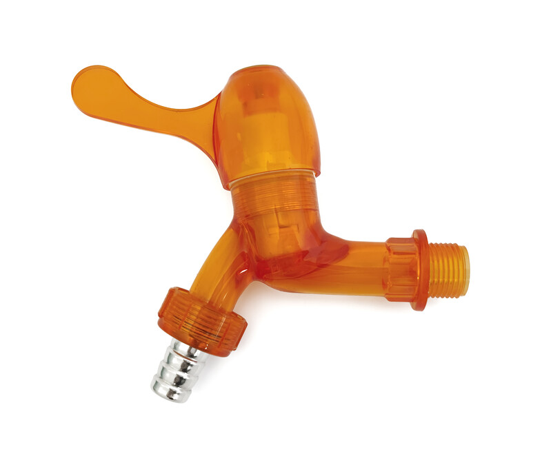 БЕЗ БРЕНДА. Кран водоразборный 1/2" пластиковый со штуцером (прозрачн. оранжевый)