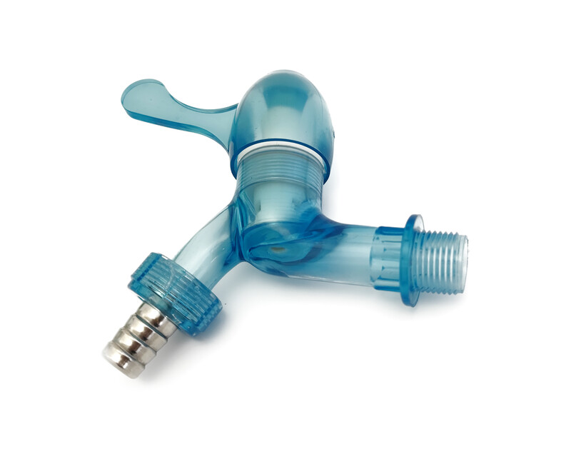 БЕЗ БРЕНДА. Кран водоразборный 1/2" пластиковый со штуцером (прозрачн. синий)