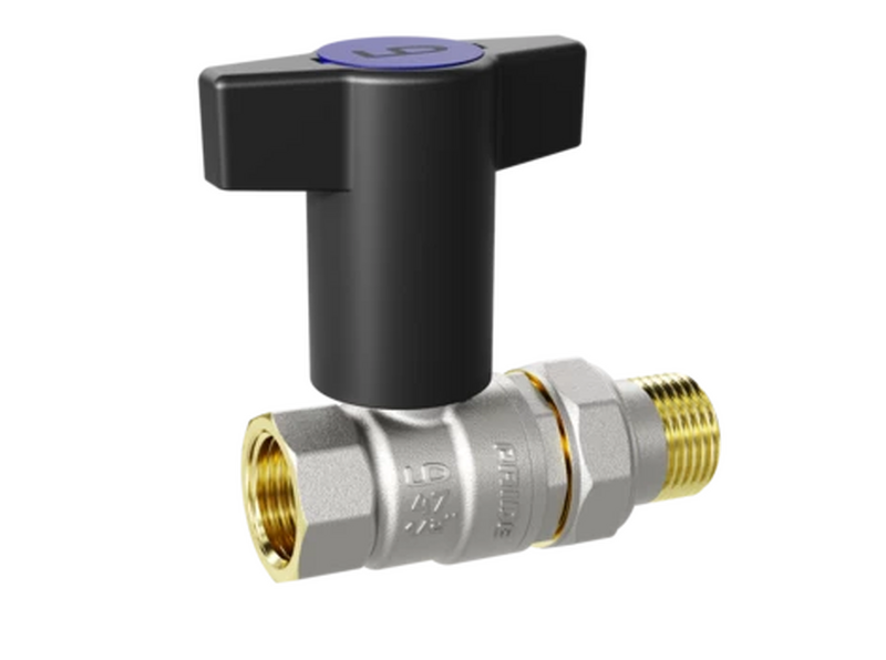 Кран вода LD Pride 3/4" г/ш Т-рукоятка (красная+голубая) американка LD 47.348.20 RB