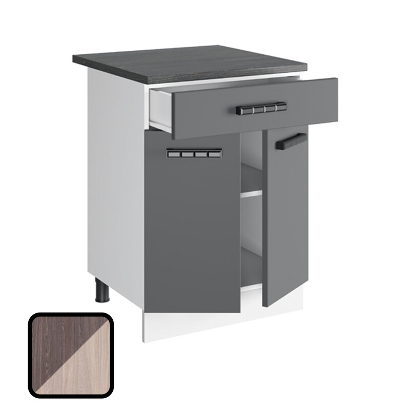BAER. Стол разделочный ГЕРДА, 1 ящик Н600-1Я Анкор темный/Анкор светлый (810х600х450) Столешница Берилл (1144)
