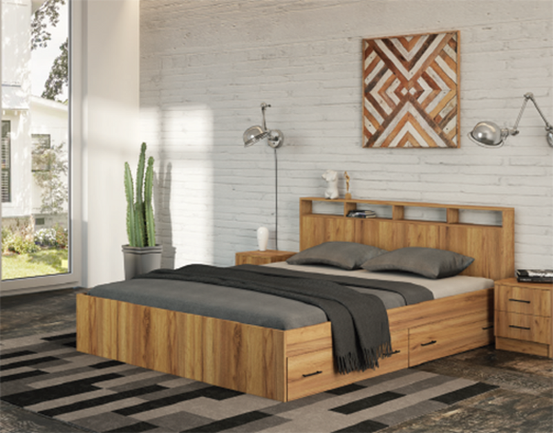 BAER. Кровать Муви-2 1800 с ящиками (дуб крафт золотой)