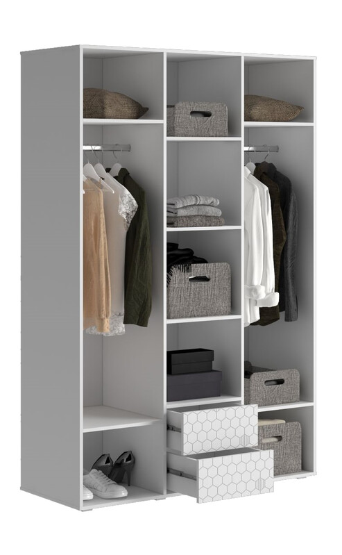 Шкаф Шарм 1350*2100*500 (3 двери+2 ящика) Белый/Белый (МДФ)