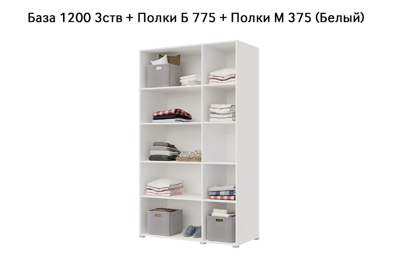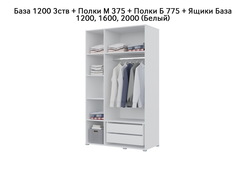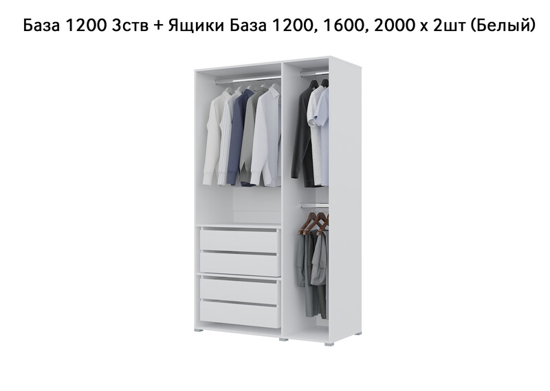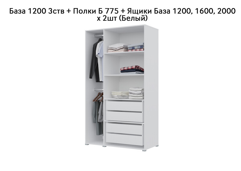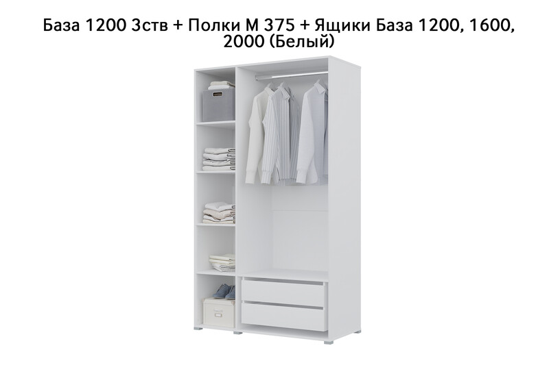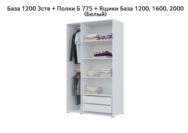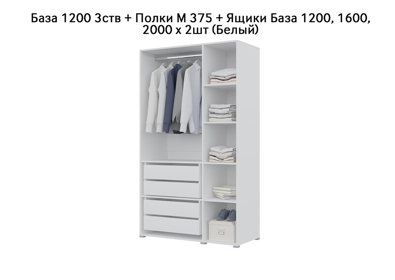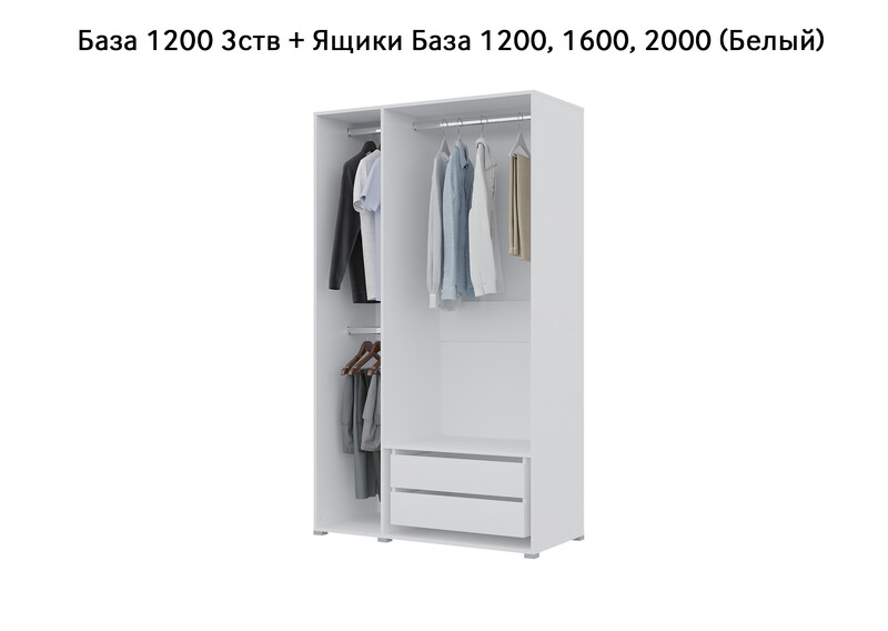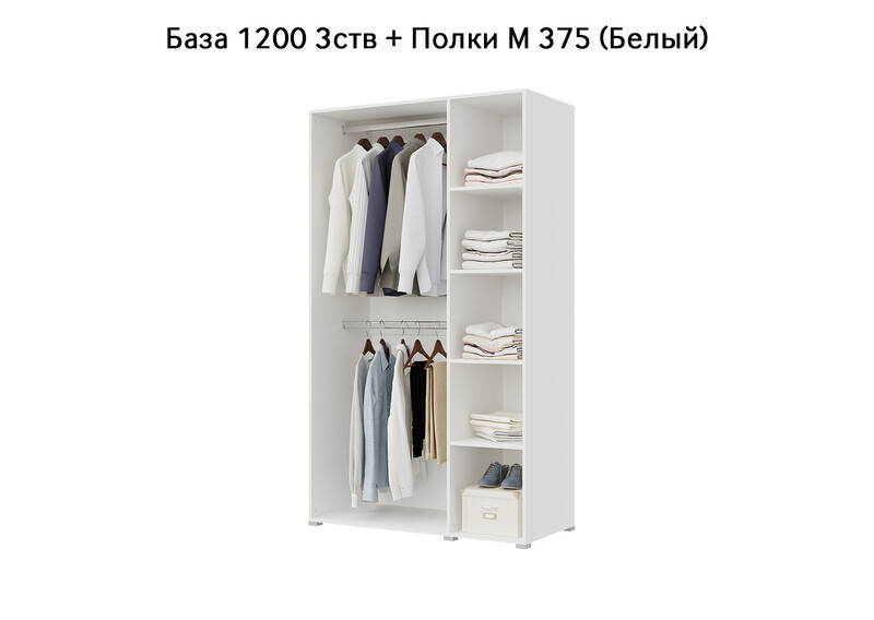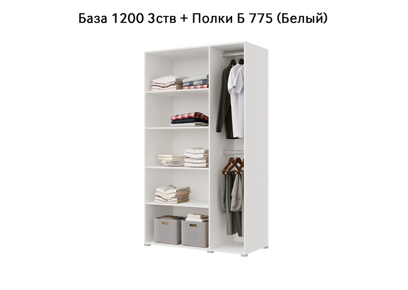 База Шкаф "Бостон" 1200 3 ств (Белый) (Боковина 3/4 ств, Крыша 1200/3, Фурнитура 3 ств)