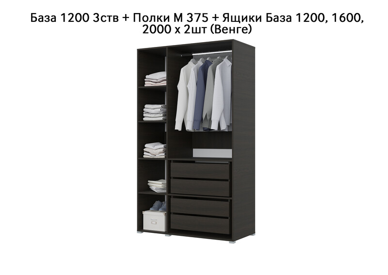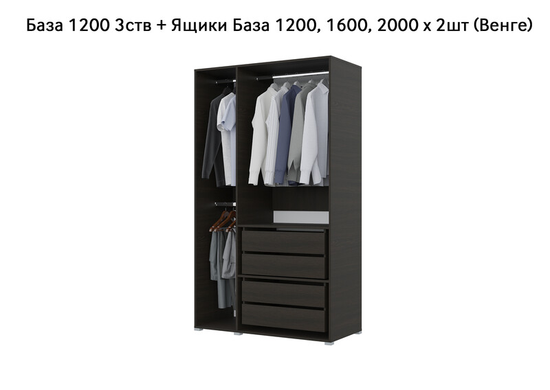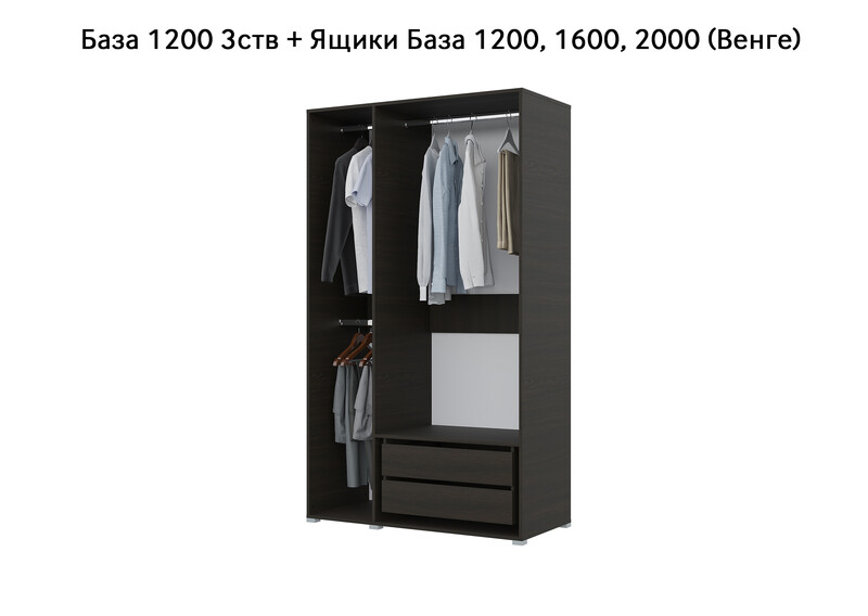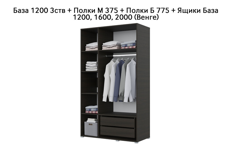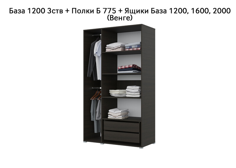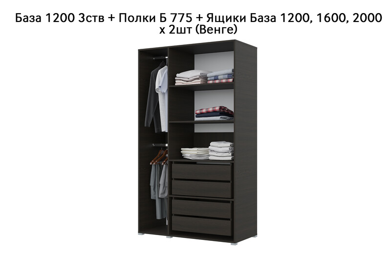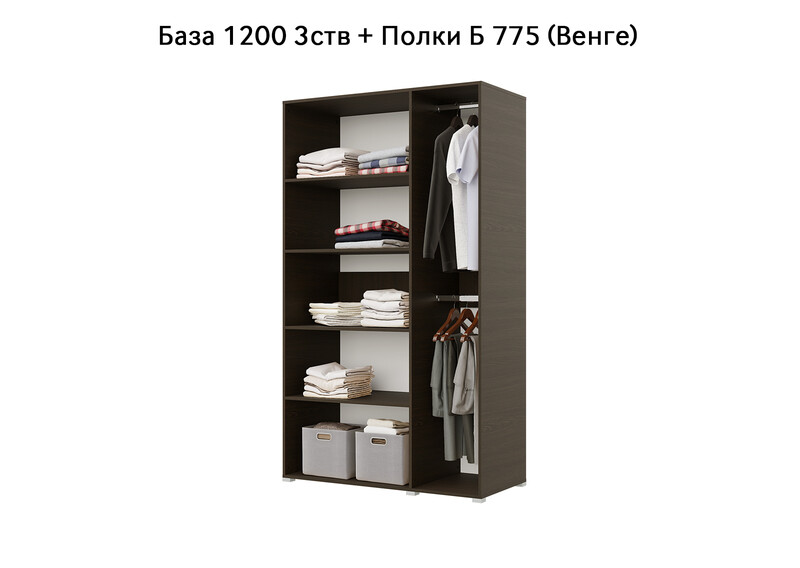 База Шкаф "Бостон" 1200 3 ств (Венге) (Боковина 3/4 ств, Крыша 1200/3, Фурнитура 3 ств)