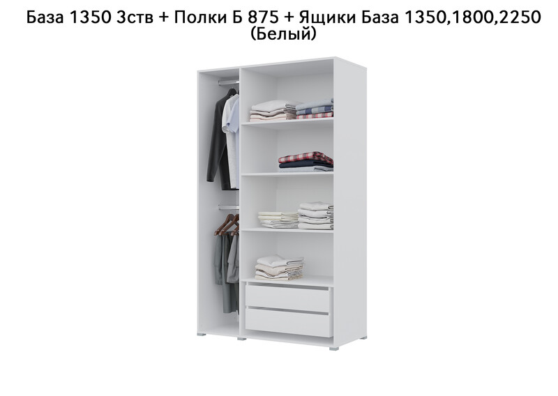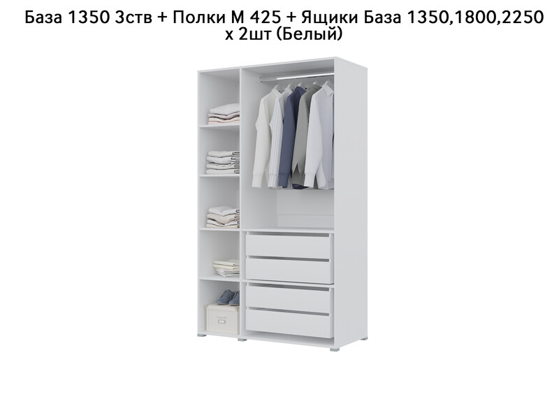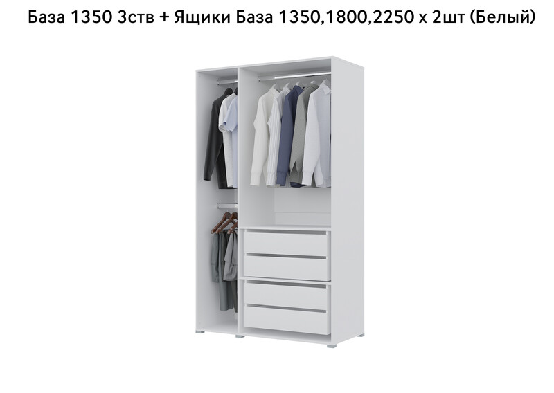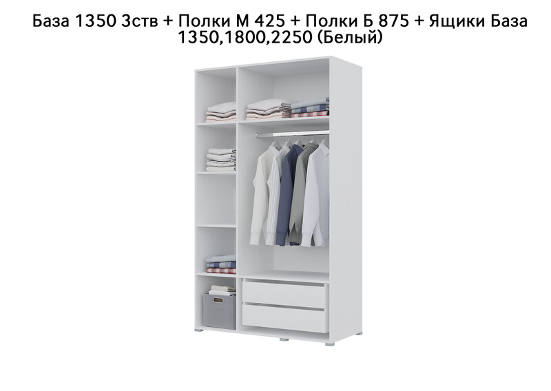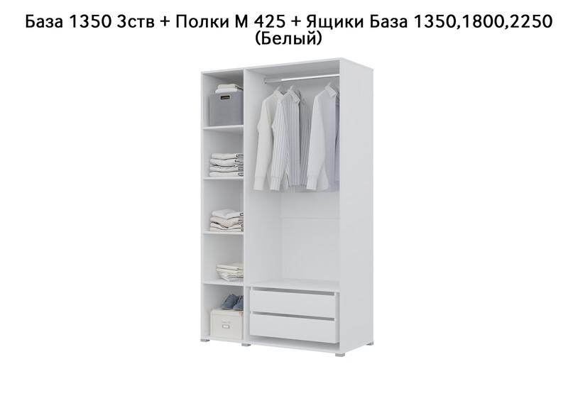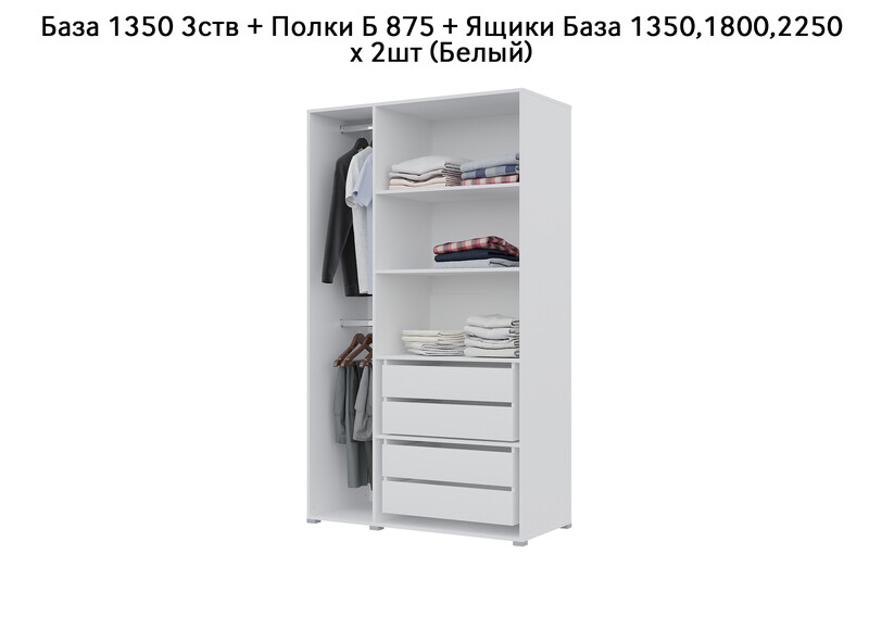 База Шкаф "Бостон" 1350 3 ств (Белый) (Боковина 3/4 ств, Крыша 1350/3, Фурнитура 3 ств)