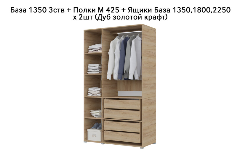 База Шкаф "Бостон" 1350 3 ств (Дуб золотой крафт) (Боковина 3/4 ств, Крыша 1350/3, Фурнитура 3 ств)