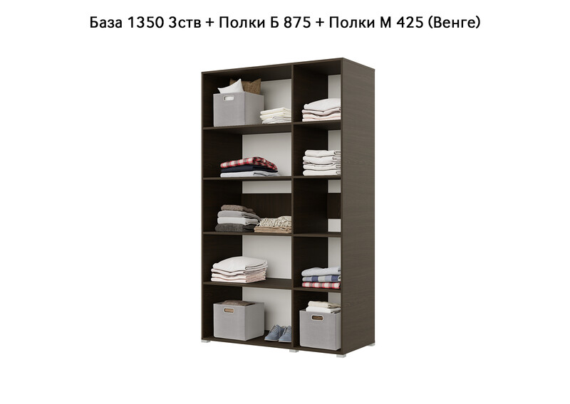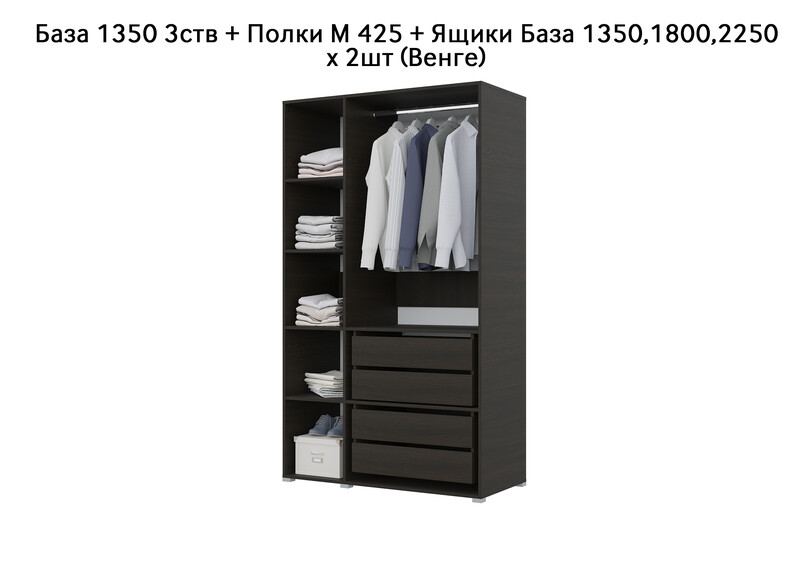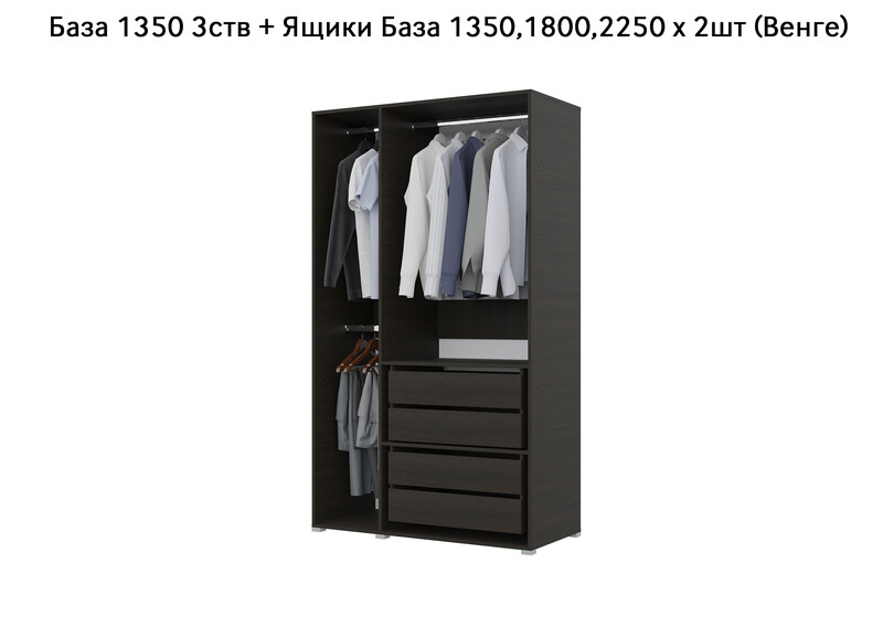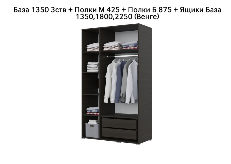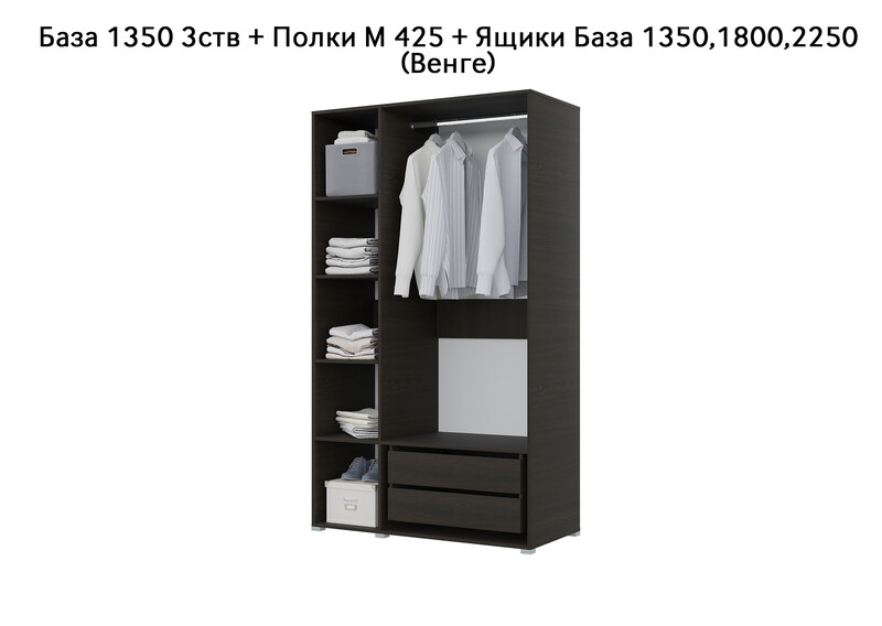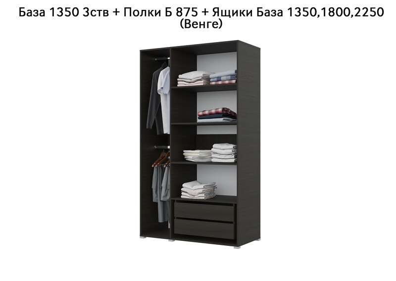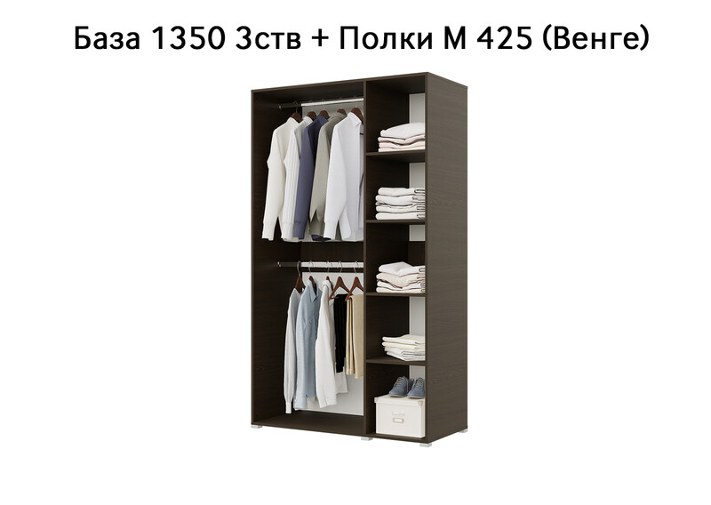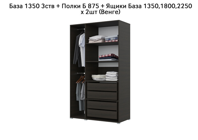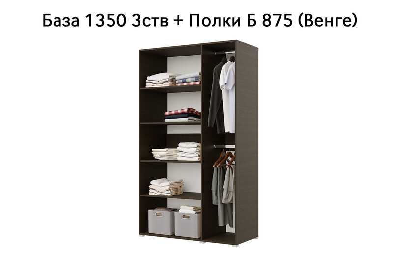 База Шкаф "Бостон" 1350 3 ств (Венге) (Боковина 3/4 ств, Крыша 1350/3, Фурнитура 3 ств)