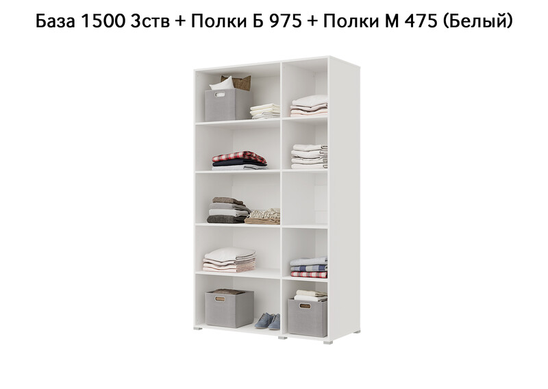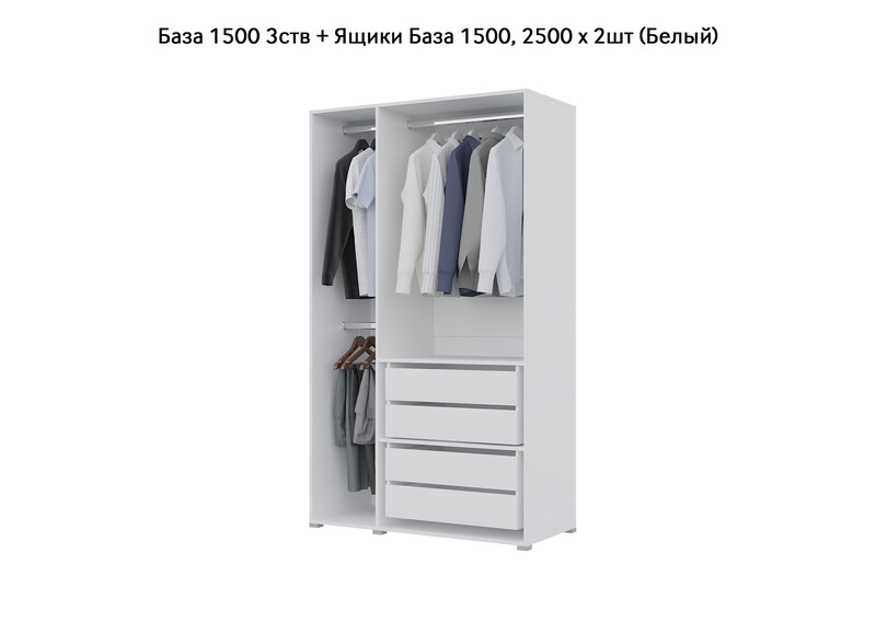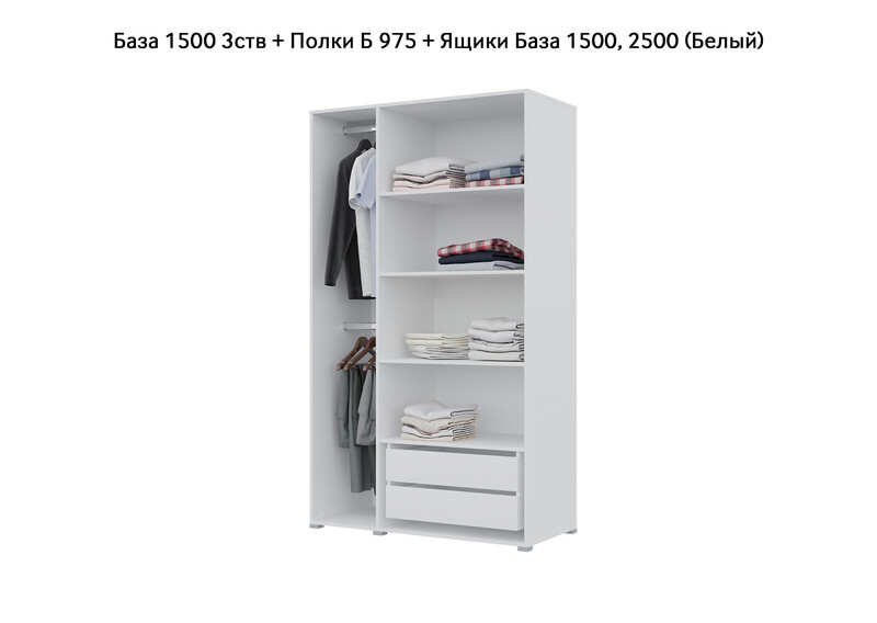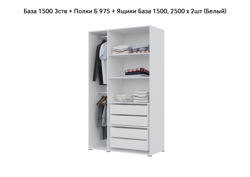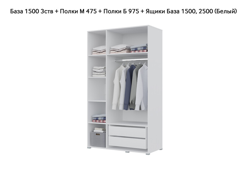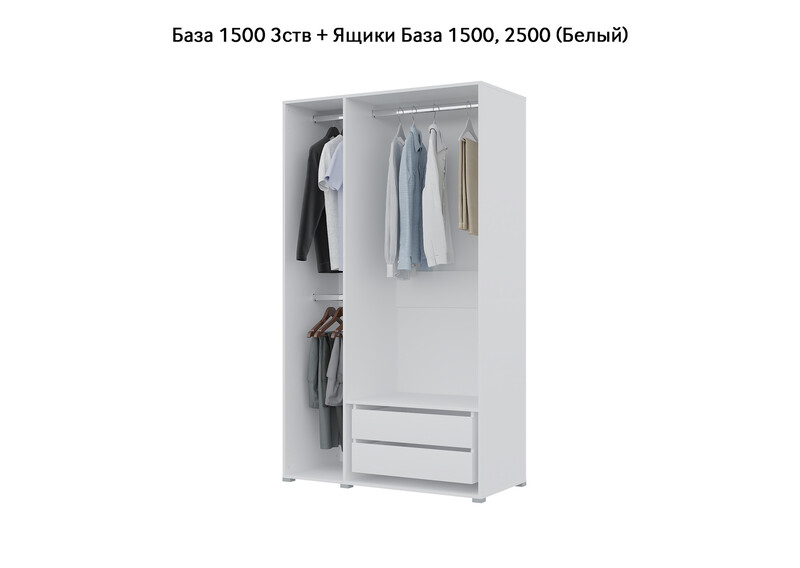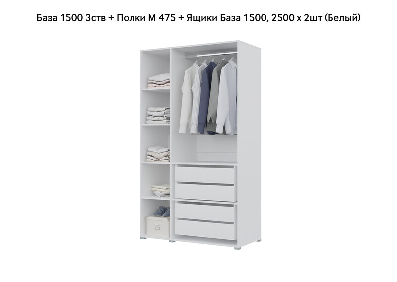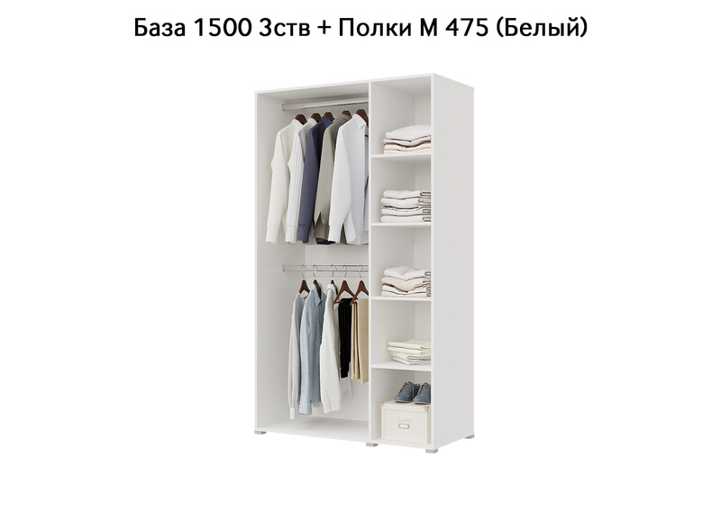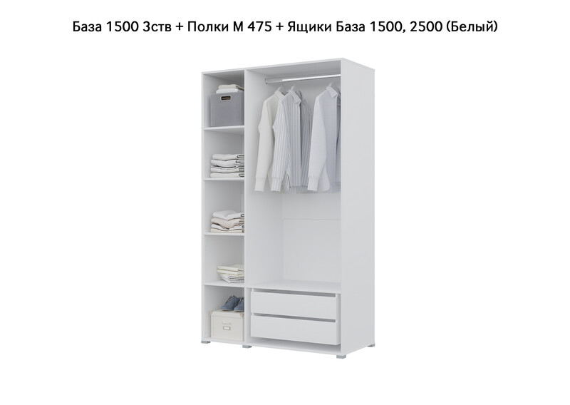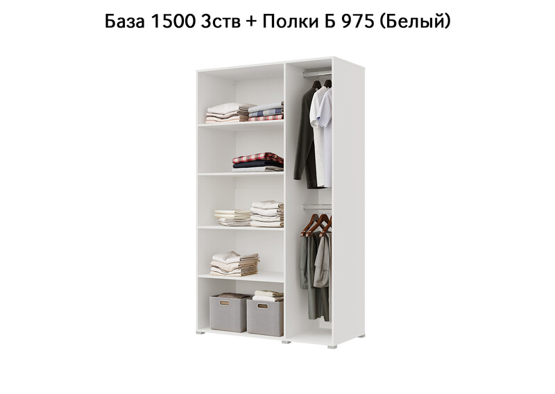 База Шкаф "Бостон" 1500 3 ств (Белый) (Боковина 3/4 ств, Крыша 1500/3, Фурнитура 3 ств)