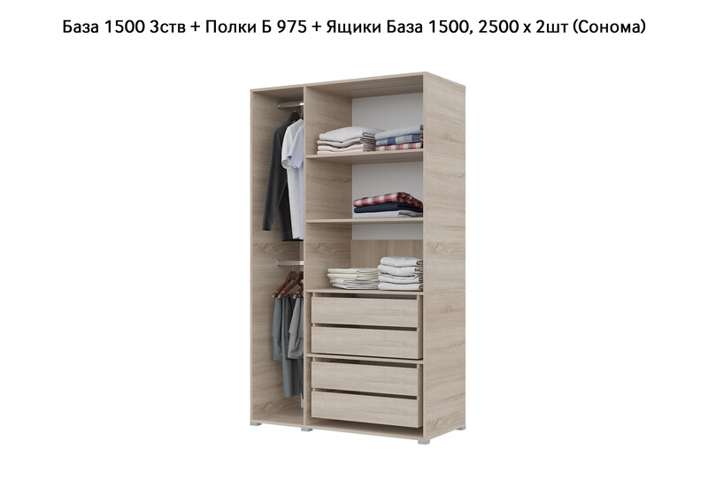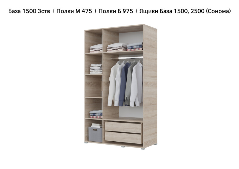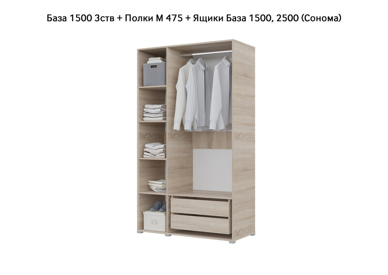 База Шкаф "Бостон" 1500 3 ств (Сонома) (Боковина 3/4 ств, Крыша 1500/3, Фурнитура 3 ств)