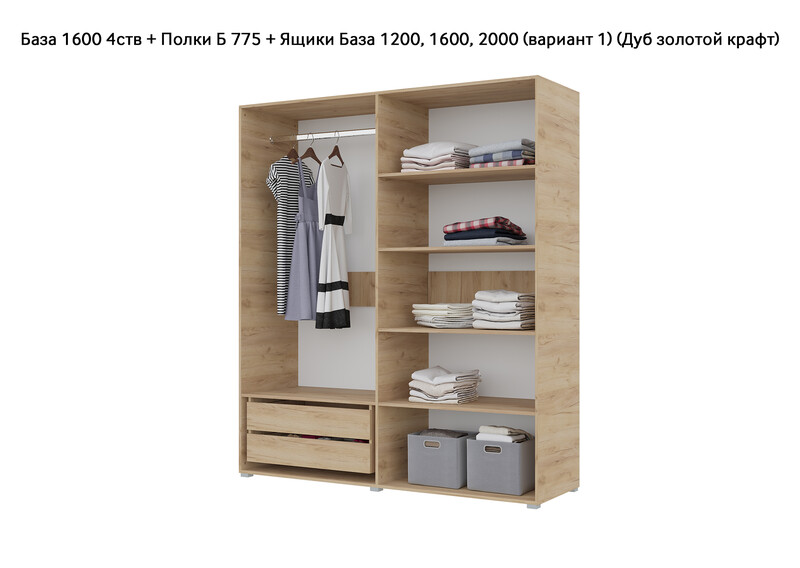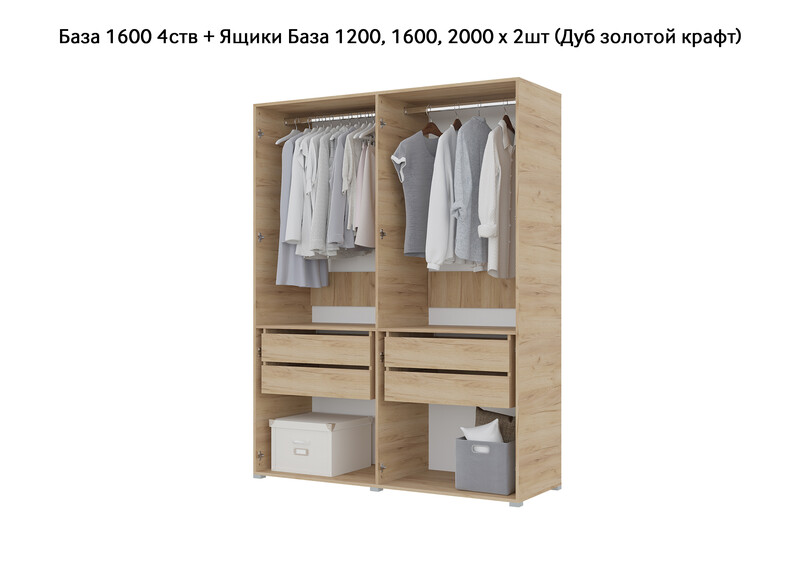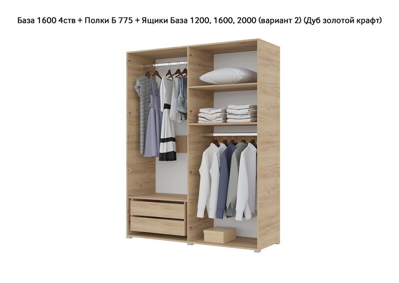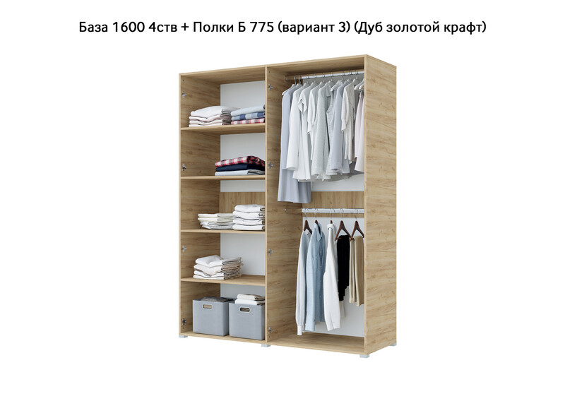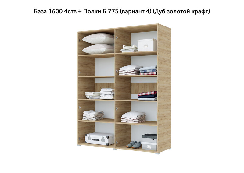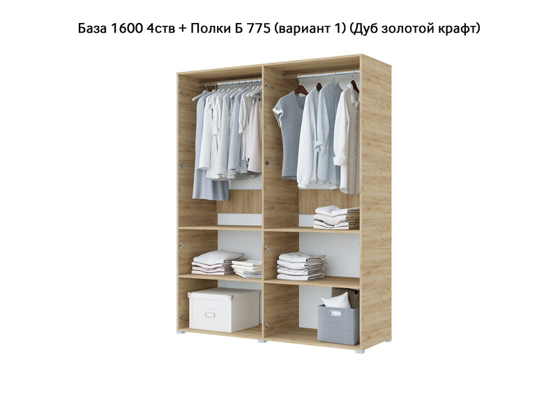 База Шкаф "Бостон" 1600 4 ств (Дуб золотой крафт) (Боковина 3/4 ств, Крыша 1600/4, Фурнитура 4 ств)