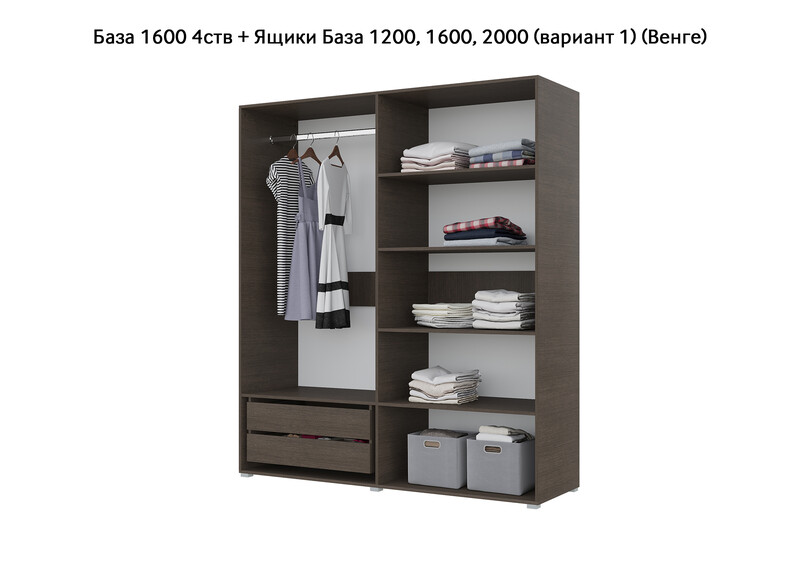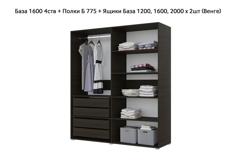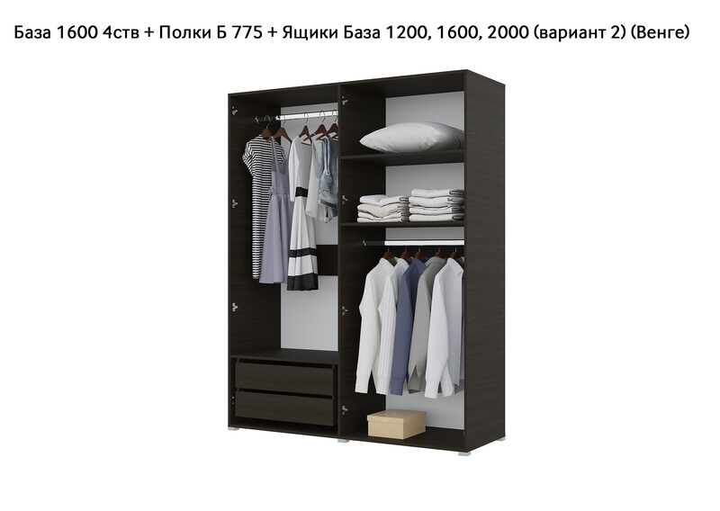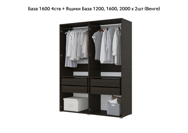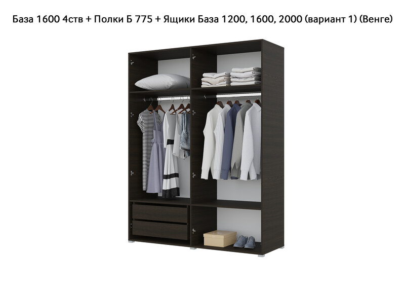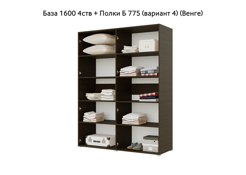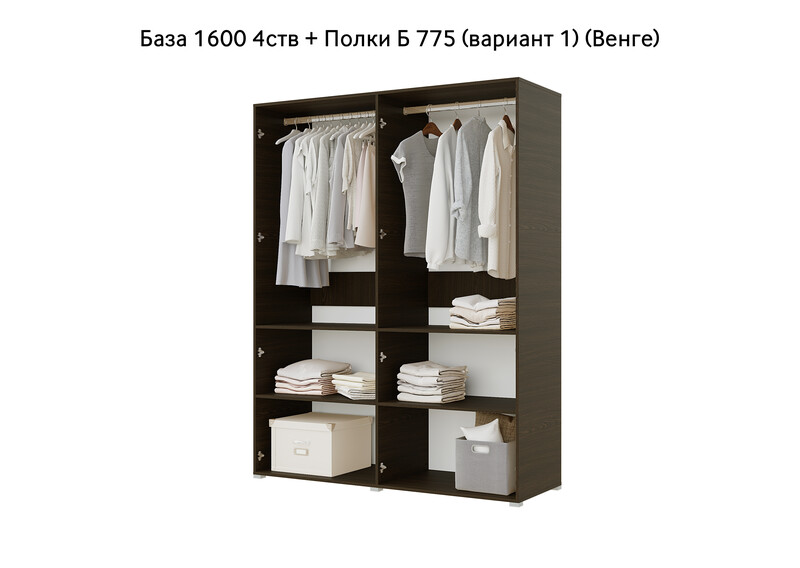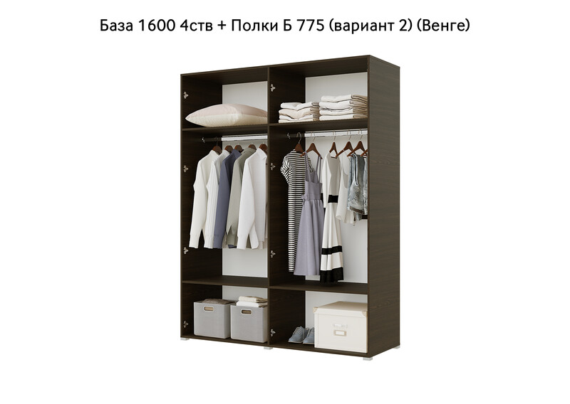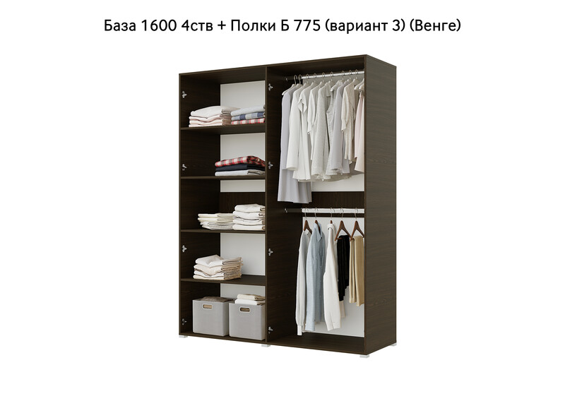 База Шкаф "Бостон" 1600 4 ств (Венге) (Боковина 3/4 ств, Крыша 1600/4, Фурнитура 4 ств)