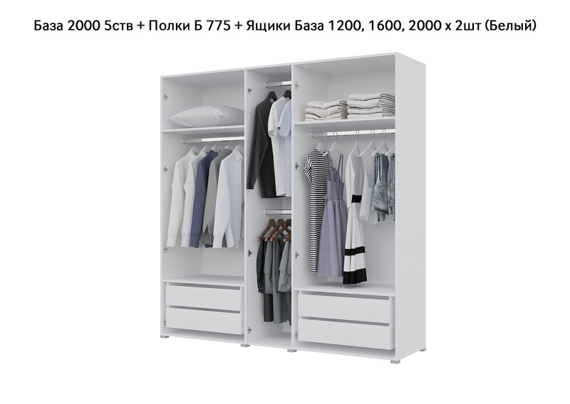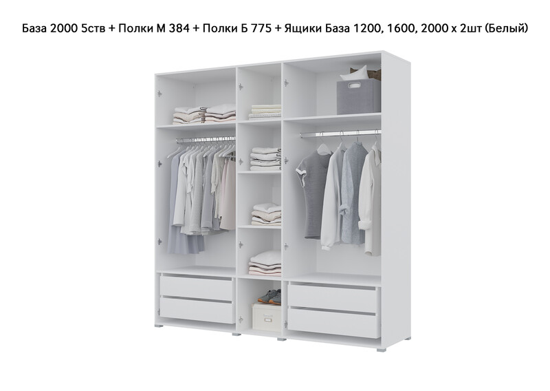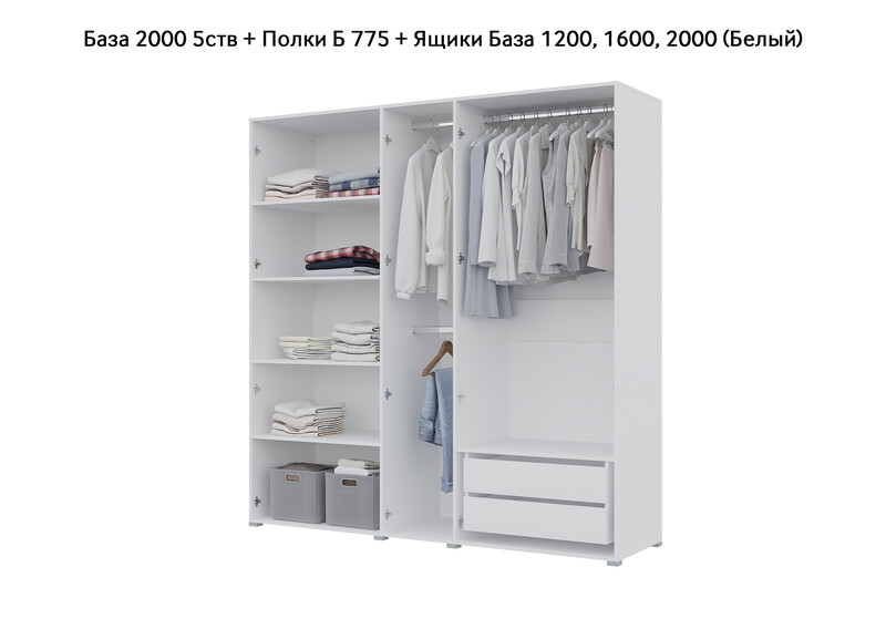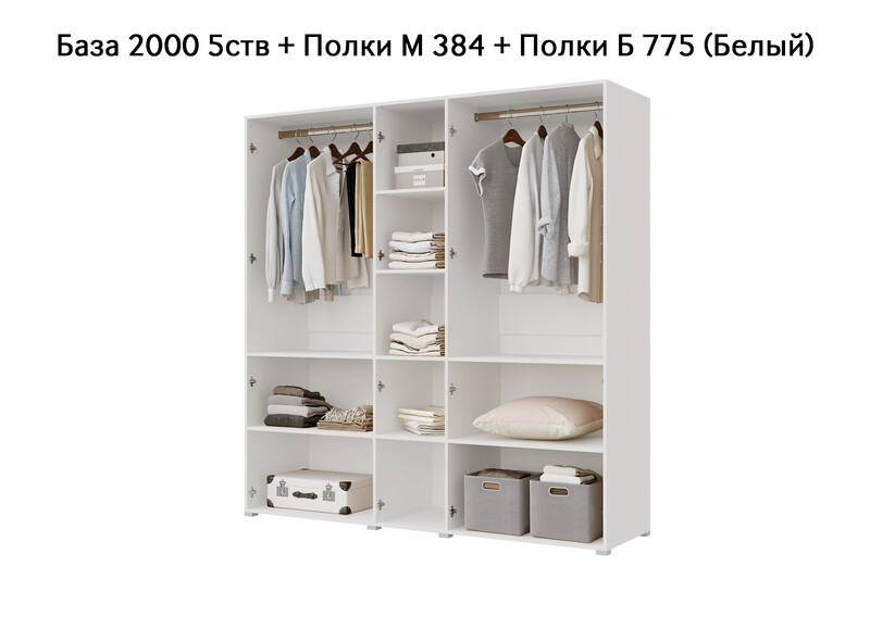 База Шкаф "Бостон" 2000 5 ств (Белый)(Боковина 2/5 ств (2 шт.), Крыша 2000/5, Фурнитура 5 ств)