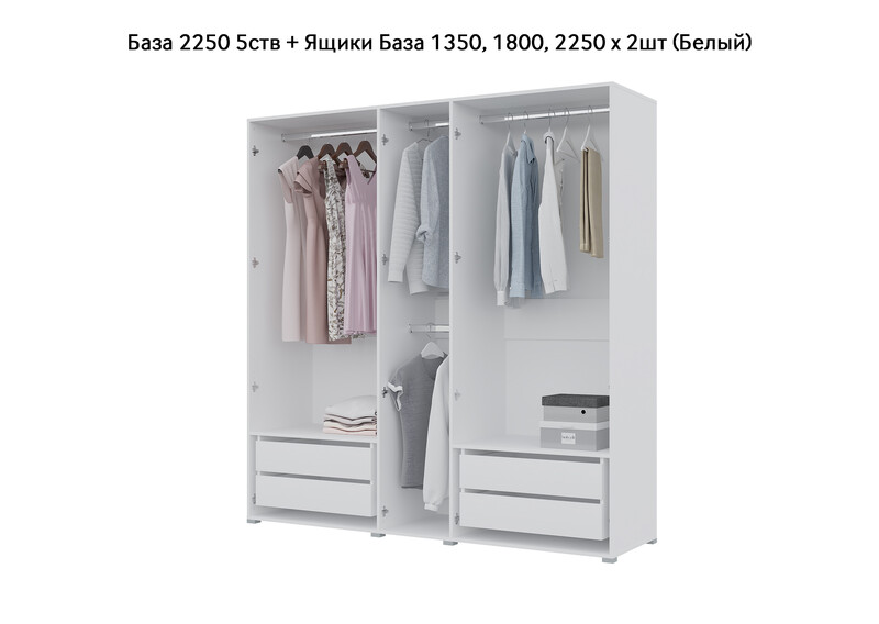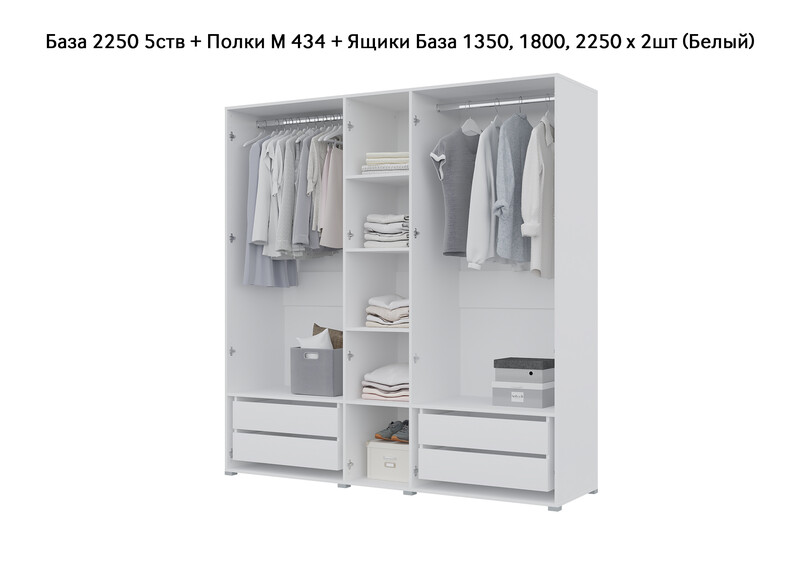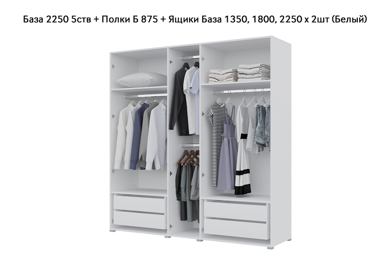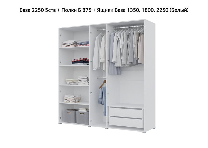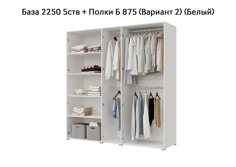 База Шкаф "Бостон" 2250 5 ств (Белый) (Боковина 2/5 ств (2 шт.), Крыша 2250/5, Фурнитура 5 ств)