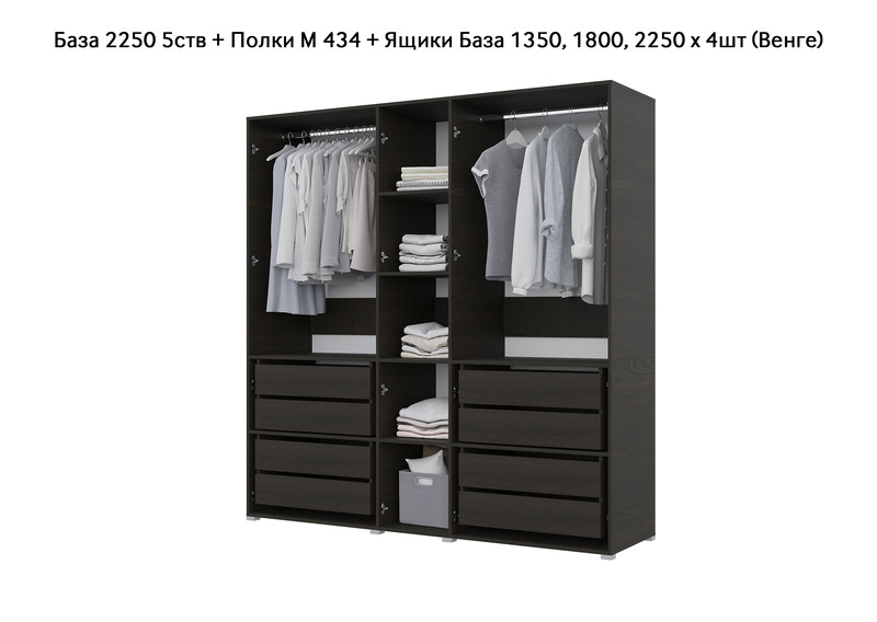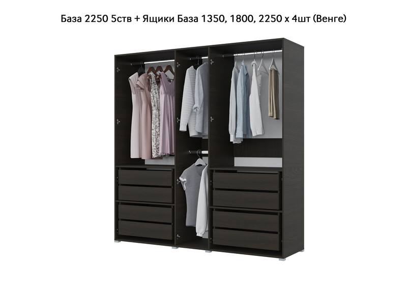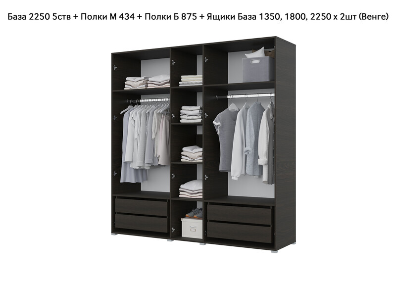 База Шкаф "Бостон" 2250 5 ств (Венге) (Боковина 2/5 ств (2 шт.), Крыша 2250/5, Фурнитура 5 ств)