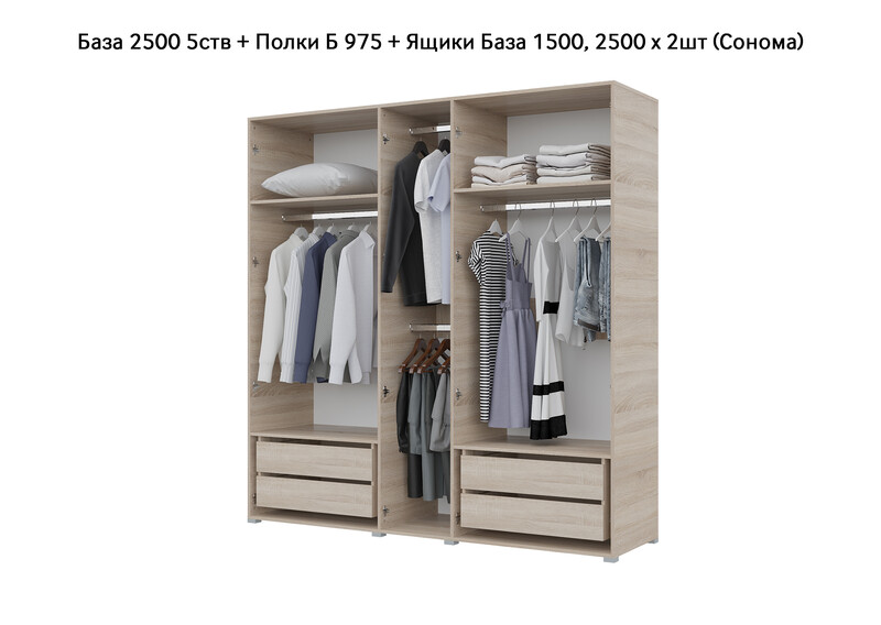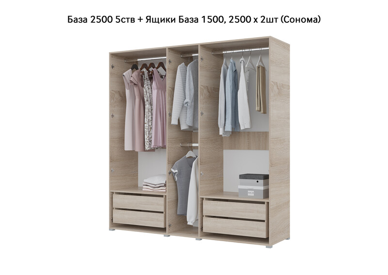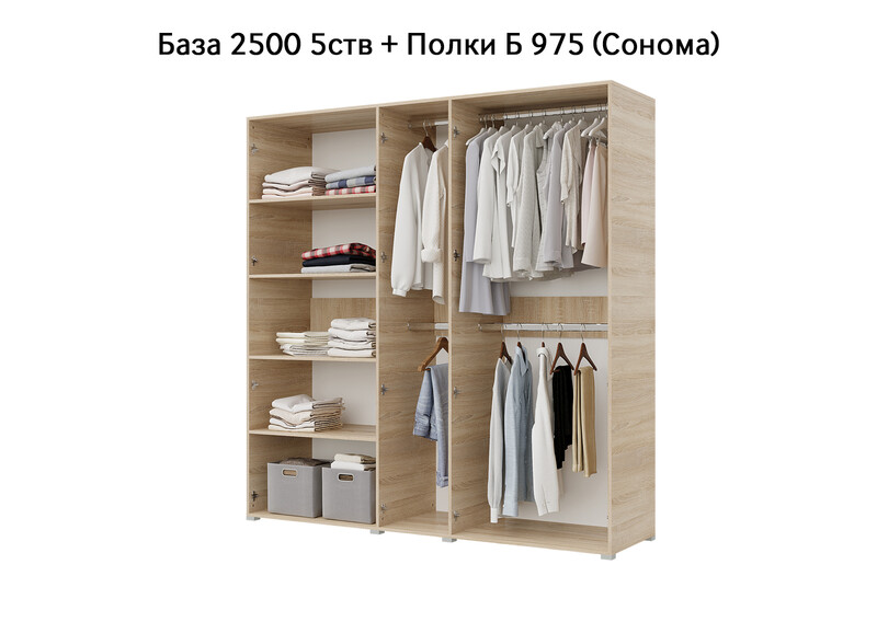 База Шкаф "Бостон" 2500 5 ств (Сонома) (Боковина 2/5 ств (2 шт.), Крыша 2500/5, Фурнитура 5 ств)