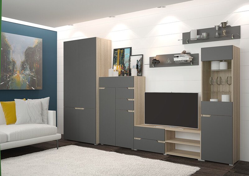 Горизонт. ФАСАД Гостиная Анталия - 1 (графит) (на фото со шкафом и комодом) (2 места)